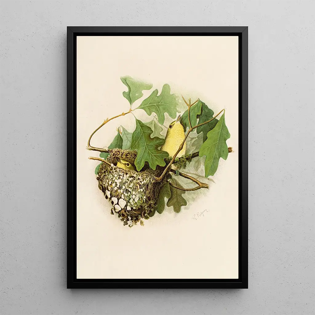 La impresión artística del cuadro "El mundo de las aves norteamericanas pl17" de Robert Ridgway nos transporta a un paisaje lleno de colores y vida. Las tonalidades vibrantes de los plumajes de las aves, que van desde rojos intensos hasta amarillos brillantes, se combinan armoniosamente con los tonos naturales del follaje circundante. La técnica de la acuarela, dominada por Ridgway, permite captar la ligereza y la gracia de las aves en su hábitat natural. Cada detalle está cuidadosamente observado, creando una atmósfera a la vez realista y poética. Esta obra es una verdadera celebración de la naturaleza, invitando a maravillarse ante la belleza del mundo aviar.