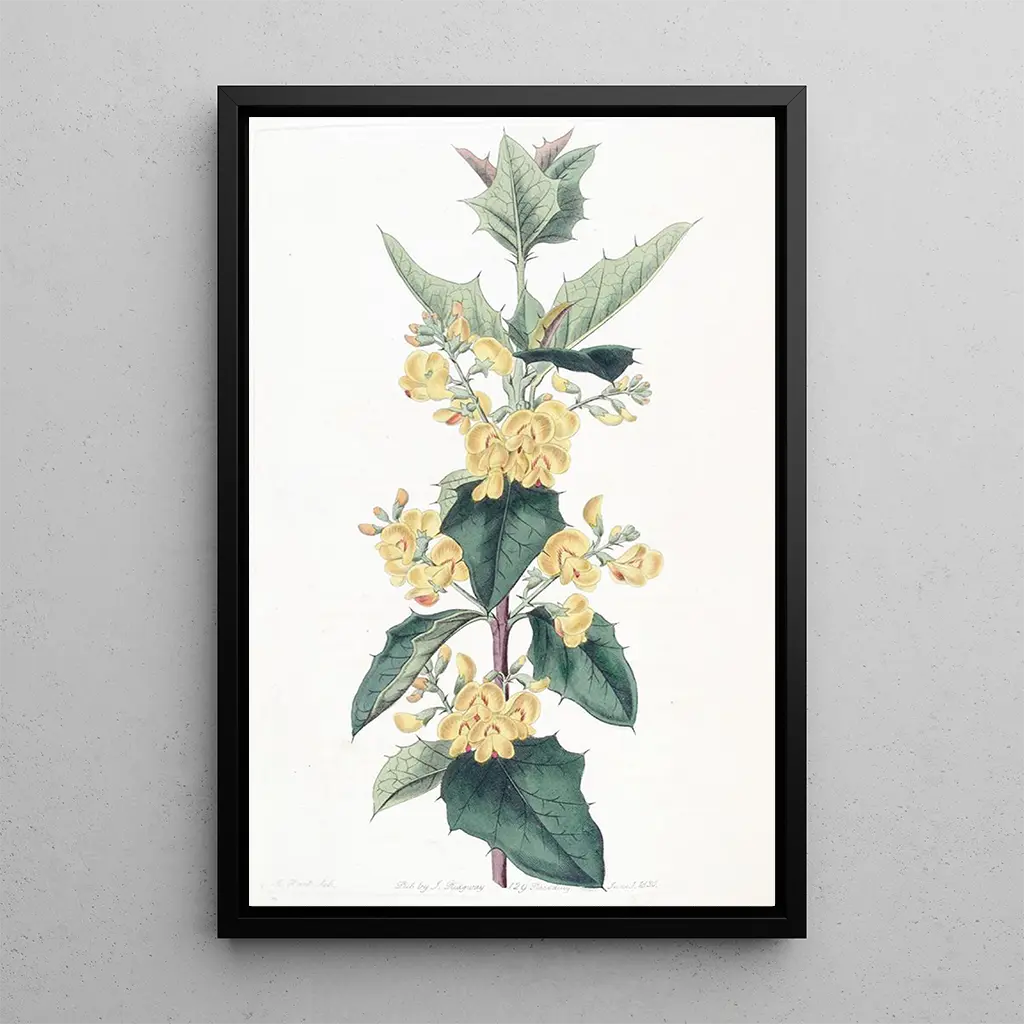 La impresión artística del podolobium de tres lóbulos es una opción decorativa que enriquece su espacio vital. Ya sea en una sala de estar, una oficina o un dormitorio, este cuadro aporta un toque de color y vitalidad. La calidad de impresión garantiza una fidelidad notable a los detalles de la obra original, permitiendo apreciar toda la finura de la ilustración. Al integrar esta obra en su decoración, crea una atmósfera cálida y acogedora, rindiendo homenaje a la belleza de la naturaleza. Esta pieza es una verdadera ventaja para cualquier colección de arte botánico.