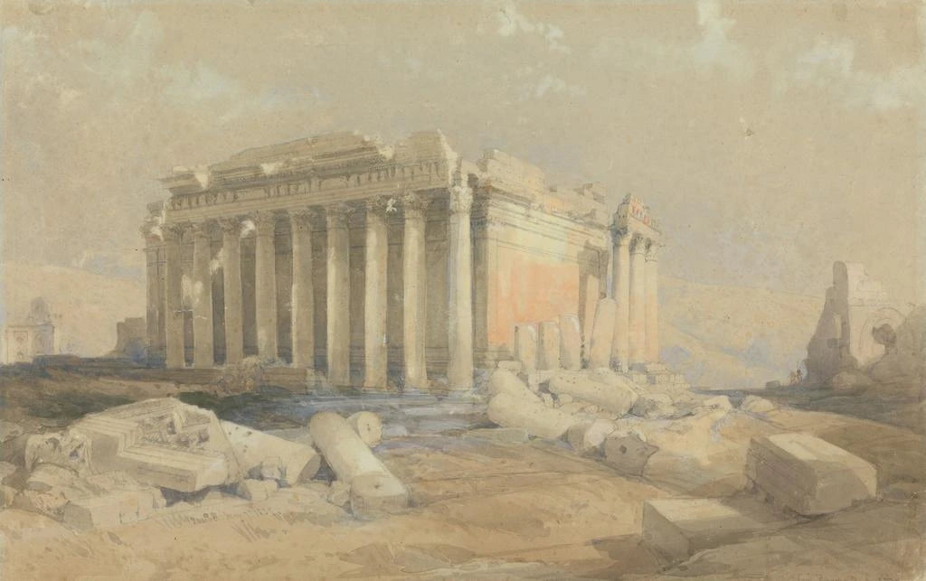 David Roberts, pintor escocés del siglo XIX, es reconocido por sus representaciones de paisajes y monumentos del Medio Oriente. Viajero inflexible, supo capturar la belleza de los sitios antiguos a través de sus obras. Influenciado por el romanticismo, logró combinar precisión y poesía, rindiendo homenaje a la arquitectura y las culturas que encontró. Sus viajes por Egipto y Líbano marcaron profundamente su estilo, convirtiéndolo en un pionero en el género del paisaje oriental. El Templo de Baalbek es una de sus obras más famosas, testimonio de su talento y compromiso por inmortalizar estas maravillas.