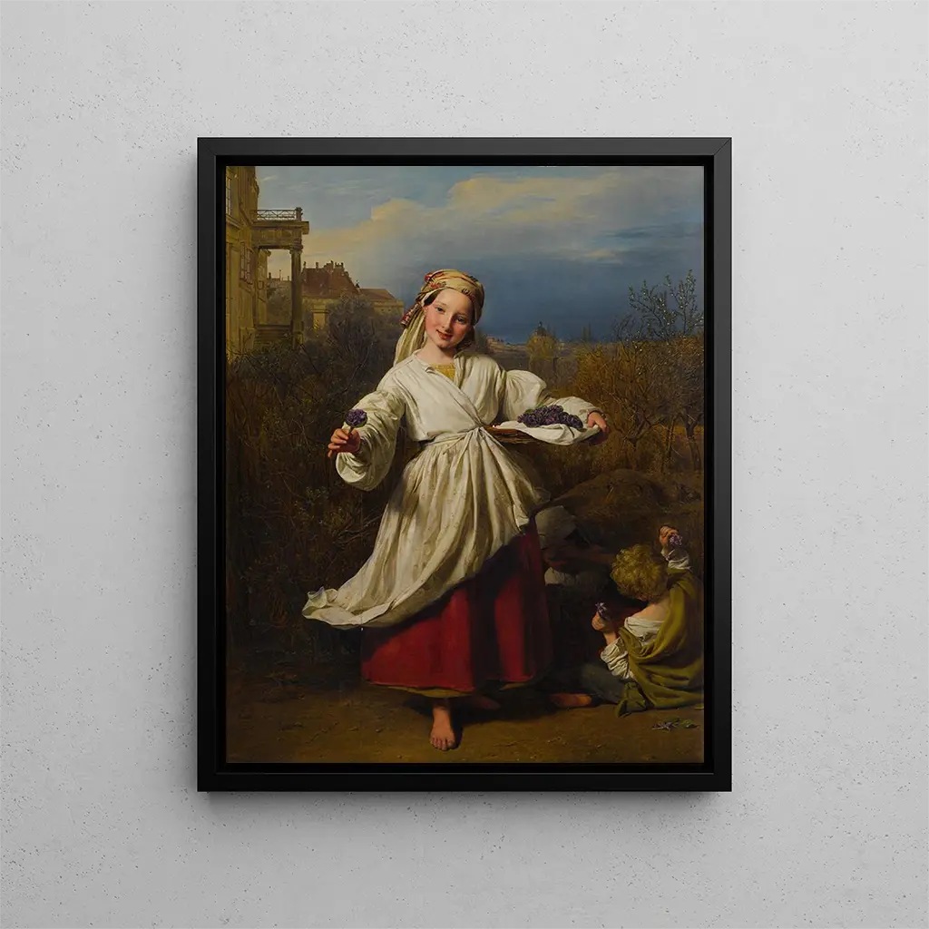 Ferdinand Georg Waldmüller, nacido en 1793 en Viena, es considerado a menudo uno de los precursores del movimiento realista en el arte. Su formación académica, combinada con una sensibilidad única hacia la vida cotidiana, le permitió crear obras que resuenan con una autenticidad rara. Influenciado por las corrientes románticas de su época, Waldmüller supo integrar elementos de la naturaleza y de la vida urbana en sus composiciones, ofreciendo así un reflejo fiel de la sociedad vienesa del siglo XIX. Su influencia se hace sentir más allá de su época, inspirando a numerosos artistas a explorar lo cotidiano como fuente de inspiración. Con "El vendedor de flores", nos recuerda que la belleza a menudo se oculta en los momentos más simples, una lección