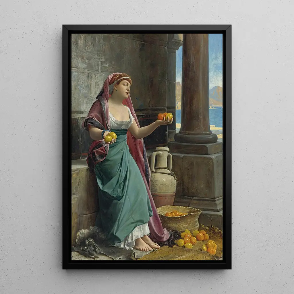 La reproducción del cuadro "El vendedor de limones" de Jean Lecomte du Nouÿ captura la esencia de un mercado animado, donde la luz brillante resalta los limones amarillos, símbolos de frescura y vitalidad. La composición está cuidadosamente diseñada, con personajes en interacción, creando una atmósfera cálida y acogedora. Los colores vivos, principalmente amarillos y verdes, evocan una sensación de alegría y dinamismo, mientras que la técnica impresionista del artista aporta un toque de movimiento y vida a la escena. Cada detalle, desde las expresiones de los personajes hasta las texturas de las frutas, contribuye a una inmersión total en este momento de la vida cotidiana.