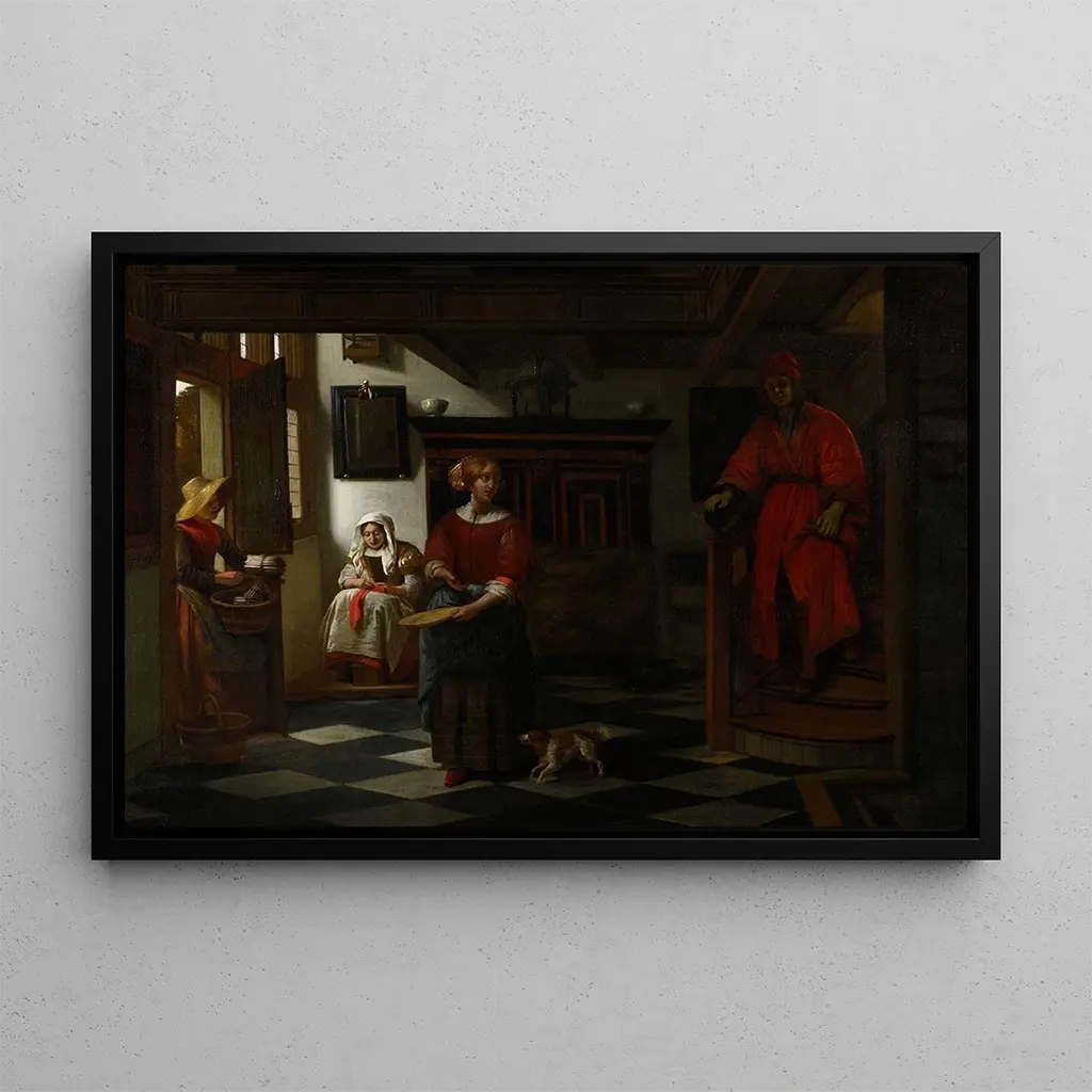 Pieter de Hooch, activo en el siglo XVII, es reconocido por sus escenas de la vida cotidiana, a menudo impregnadas de una tranquilidad e intimidad notables. Influenciado por contemporáneos como Vermeer, Hooch se distingue por su capacidad para jugar con la luz y el espacio. Sus obras, a menudo centradas en interiores y en interacciones humanas, testimonian una época en la que el realismo y la representación de la vida doméstica ocupaban un lugar preponderante en el arte neerlandés. Hooch supo capturar la esencia de la vida burguesa, convirtiéndose en un artista imprescindible de su época.