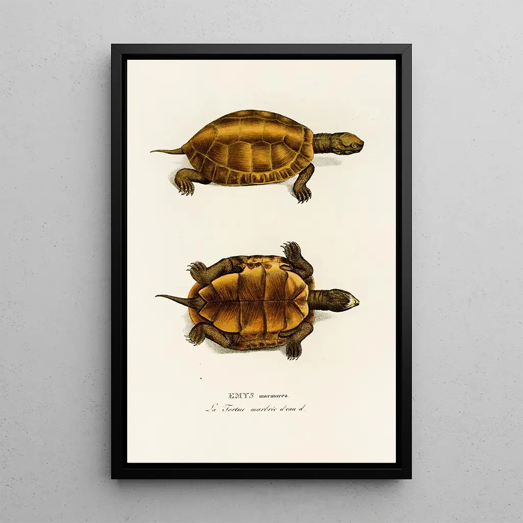 La impresión artística de Emys Marmorea es una opción decorativa que embellecerá cualquier espacio, ya sea una sala, una oficina o un dormitorio. Su calidad de impresión y su respeto por los detalles la convierten en una pieza de arte que atrae la atención y suscita admiración. Al integrar este lienzo en tu decoración, aportas un toque de elegancia y serenidad, celebrando al mismo tiempo la belleza de la naturaleza. Este cuadro, a la vez estético y educativo, es una excelente manera de introducir una reflexión sobre la biodiversidad en tu vida cotidiana.