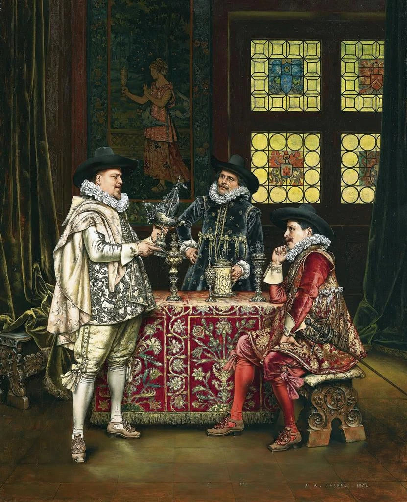 En un mundo donde lo cotidiano se mezcla con lo extraordinario, la obra "Impresión artística en la joyería" de Adolphe Alexandre Lesrel se distingue por su capacidad para capturar un instante de vida mientras revela la riqueza de las interacciones humanas. Esta escena íntima, donde los artesanos se entregan a su arte, transporta al espectador al universo acogedor y cálido de un taller de orfebrería. Lesrel, con una maestría inigualable en el detalle y la luz, logra evocar no solo los gestos precisos de los artesanos, sino también la atmósfera vibrante que reina en este lugar de creación. Cada mirada puesta en esta impresión artística permite sentir la esencia misma del artesanato, celebrando así un saber hacer ancestral y rindiendo homenaje a la belleza de lo cotidiano.