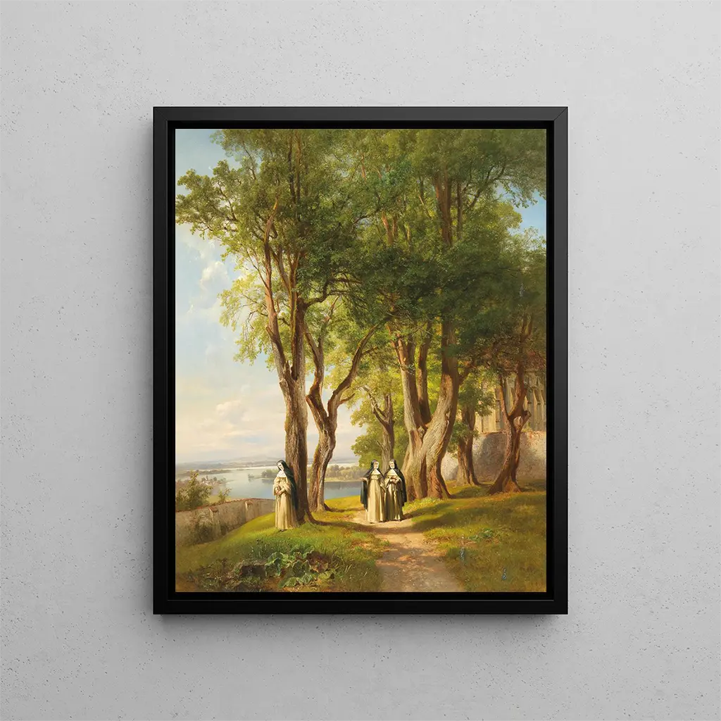 Reproducción En el jardín del convento - Anton Hansch – Introducción cautivadora En el vasto panorama de la historia del arte, algunas obras logran capturar la esencia de una época mientras evocan emociones atemporales. "En el jardín del convento" de Anton Hansch encaja perfectamente en esta categoría. Esta obra, a la vez delicada y evocadora, nos transporta a un universo donde la naturaleza y la espiritualidad se entrelazan armoniosamente. Al contemplar esta escena tranquila, se siente una invitación a la meditación y a la contemplación, como si el jardín mismo fuera un santuario de serenidad. La luz suave que baña el cuadro, así como los detalles minuciosos de las flores y las hojas, nos recuerdan la belleza efímera de la vida, al mismo tiempo que nos ofrecen un momento de descanso lejos de los tumultos del mundo moderno. Estilo y singularidad de la obra El estilo de Anton Hansch se caracteriza por una atención meticulosa a los detalles y una paleta de colores sutilmente matizada. En "En el jardín del convento", cada elemento está cuidadosamente pensado, desde los pétalos de las flores hasta las sombras proyectadas por los árboles. Esta obra emana una atmósfera tranquila, casi meditativa, donde la mirada del espectador se guía suavemente a través del jardín. Las tonalidades de verde, azul y rosa se entrelazan para crear una armonía visual que evoca la dulzura de la naturaleza. Este cuadro también se distingue por su capacidad para capturar la luz natural, un elemento esencial que confiere a la obra una dimensión casi viva. La composición, equilibrada y serena, refleja el respeto del artista por la belleza del mundo natural, al mismo tiempo que rinde homenaje a la tradición artística que celebra la naturaleza como fuente de inspiración. El artista y su influencia Anton Hansch, aunque menos conocido que algunos de sus contemporáneos, supo marcar su época con su enfoque único y sensible de la pintura. Nacido en un contexto donde el arte estaba en plena transformación, supo aprovechar las corrientes artísticas de su tiempo mientras desarrollaba un estilo propio. Influenciado por el romanticismo y el realismo, Hansch supo integrar elementos de estos movimientos para crear obras que hablan al alma. Su capacidad para representar la naturaleza con tanta finura y profundidad emocional testimonia de