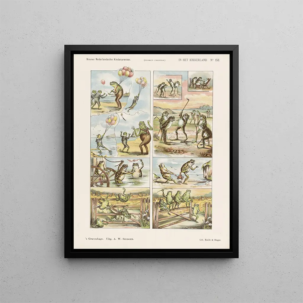 Emrik Binger, artista neerlandés activo en el siglo XX, es conocido por sus obras que capturan la vida natural de una manera a la vez poética y realista. 'En el país de las ranas' es una pieza emblemática que ilustra su interés por la fauna. La pintura evoca escenas de pantanos, donde las ranas y otras criaturas acuáticas evolucionan en un entorno verde. El estilo de Binger se caracteriza por colores vivos y una atención minuciosa a los detalles, lo que permite al espectador sentir una conexión inmediata con la naturaleza. Esta pintura, como muchas otras del artista, no solo es una representación artística, sino también una invitación a la contemplación de nuestro entorno natural. En el contexto contemporáneo, esta obra tiene un interés particular, ya que nos recuerda la importancia de la biodiversidad y la conservación de los hábitats naturales. La obra de Binger encuentra así eco en las preocupaciones actuales por la ecología y la sostenibilidad. Para apreciar plenamente la belleza de esta pieza, le invitamos a descubrir su impresión artística en Artem Legrand.