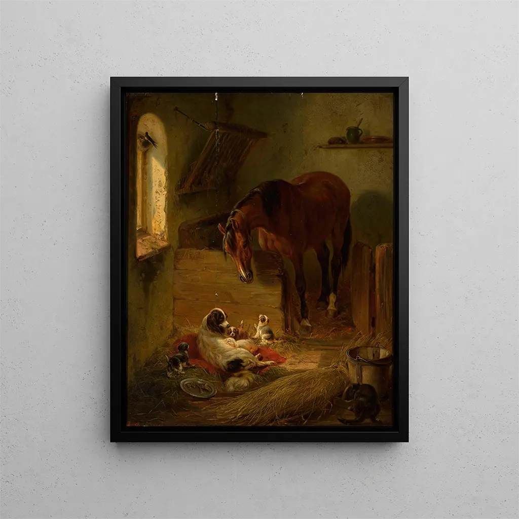 Reproducción En la granja - Benno Adam – Introducción cautivadora En el vasto panorama de la historia del arte, algunas obras logran capturar la esencia misma de la vida cotidiana con una intensidad tal que se convierten en testigos atemporales de la humanidad. "En la granja - Benno Adam" es una de esas creaciones. Esta pintura evoca una escena sencilla pero llena de significados, donde la luz, las texturas y los personajes se entrelazan para contar una historia. Al adentrarse en este universo pictórico, el espectador está invitado a compartir un momento de vida, a sentir el calor del espacio y a descubrir la belleza de los detalles a menudo pasados por alto de nuestra existencia. Estilo y singularidad de la obra Benno Adam, por su estilo, logra trascender la banalidad de las escenas rurales para convertirlas en composiciones vibrantes. La maestría de la luz en "En la granja" es particularmente notable. Los rayos del sol filtran a través de las rendijas del techo, iluminando los rostros y los objetos con una suavidad palpable. Los colores, a la vez cálidos y naturales, evocan una atmósfera de serenidad y plenitud. Los personajes, aunque inmóviles en el tiempo, parecen animados por una vida propia, cada uno expresando una emoción que resuena con el espectador. La elección de los elementos representados, desde herramientas de trabajo hasta animales, demuestra una atención minuciosa a los detalles, reforzando así la autenticidad de la escena. El artista y su influencia Benno Adam, pintor de origen alemán, supo imponerse en el mundo del arte gracias a su capacidad para capturar el alma de los paisajes y los interiores. Su obra se inscribe en el movimiento realista, pero no se limita a reproducir la realidad. La sublime, la transforma en una poesía visual que habla a todos. A través de sus cuadros, Adam nos invita a redescubrir la belleza de las cosas simples, a apreciar la vida rural y sus sutilezas. Su influencia se siente no solo en la pintura de género, sino también en la manera en que ha inspirado a otros artistas a explorar temas similares, enriqueciendo así el diálogo artístico de su época. Una decoración mural de excepción firmada Artem Legrand Para aquellos que desean incorporar un toque de elegancia y cultura en su interior, la impresión artística de "En la granja"
