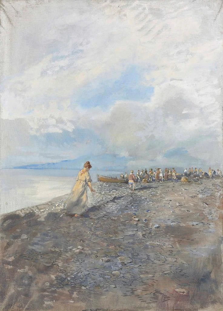 Cuadro sobre la playa de Bordighera - Pompeo Mariani | Impresión artística