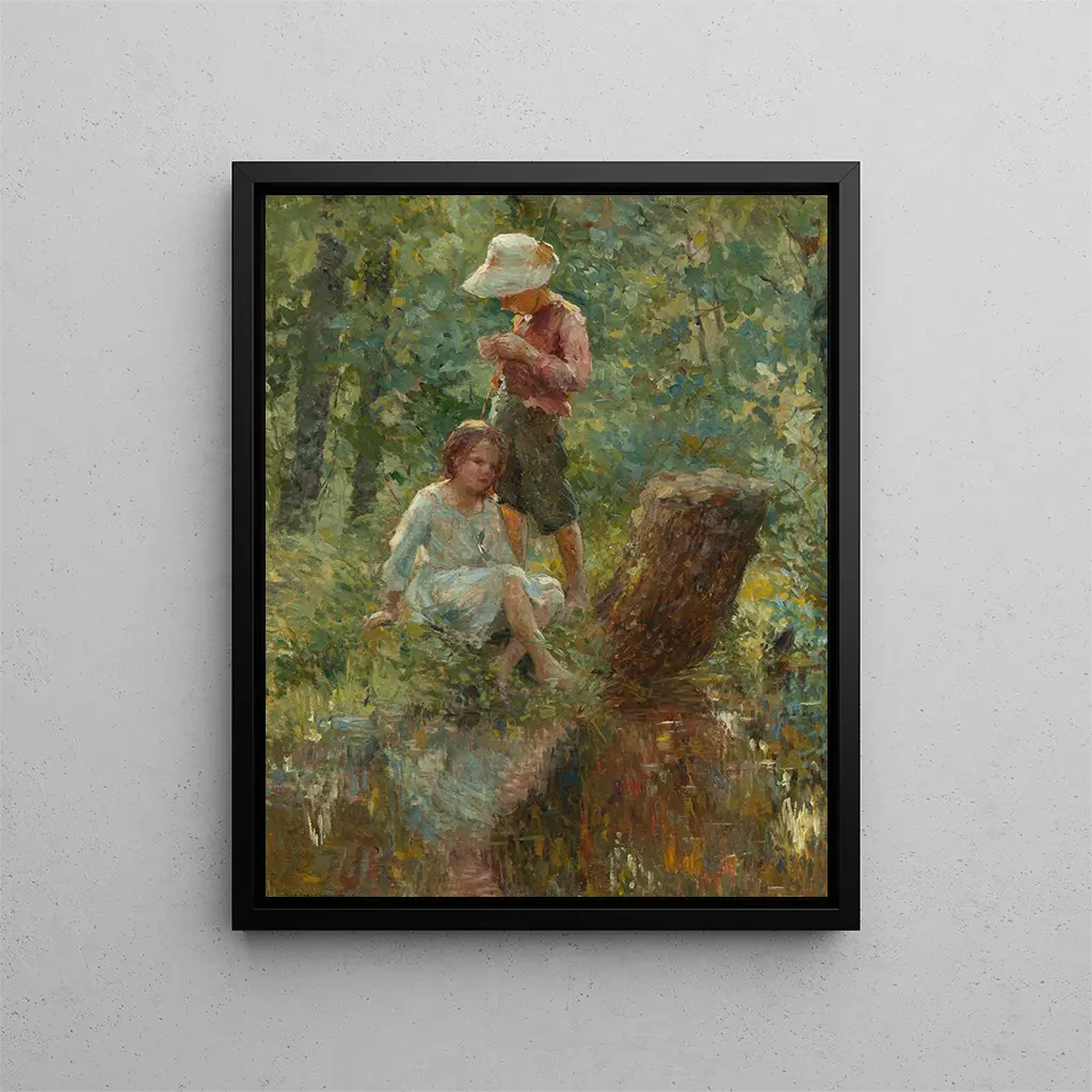 Adam Emory Albright, nacido en 1862, es un pintor estadounidense cuya obra se inscribe en el movimiento del realismo. Formado en la École des Beaux-Arts de París, supo integrar las enseñanzas de los grandes maestros europeos mientras desarrollaba un estilo personal profundamente arraigado en la naturaleza americana. Albright fue influenciado por el movimiento impresionista, pero supo alejarse de él para crear obras que se distinguen por su claridad y atención al detalle. Su pasión por la naturaleza y su compromiso con la representación fiel de los paisajes estadounidenses le han otorgado un reconocimiento duradero. Al exhibir escenas rurales y paisajes boscosos, supo capturar el espíritu de su tiempo, inspirando a numerosos artistas contemporáneos. Su legado artístico perdura, y "En los bosques" es un ejemplo perfecto de su talento y visión única.
