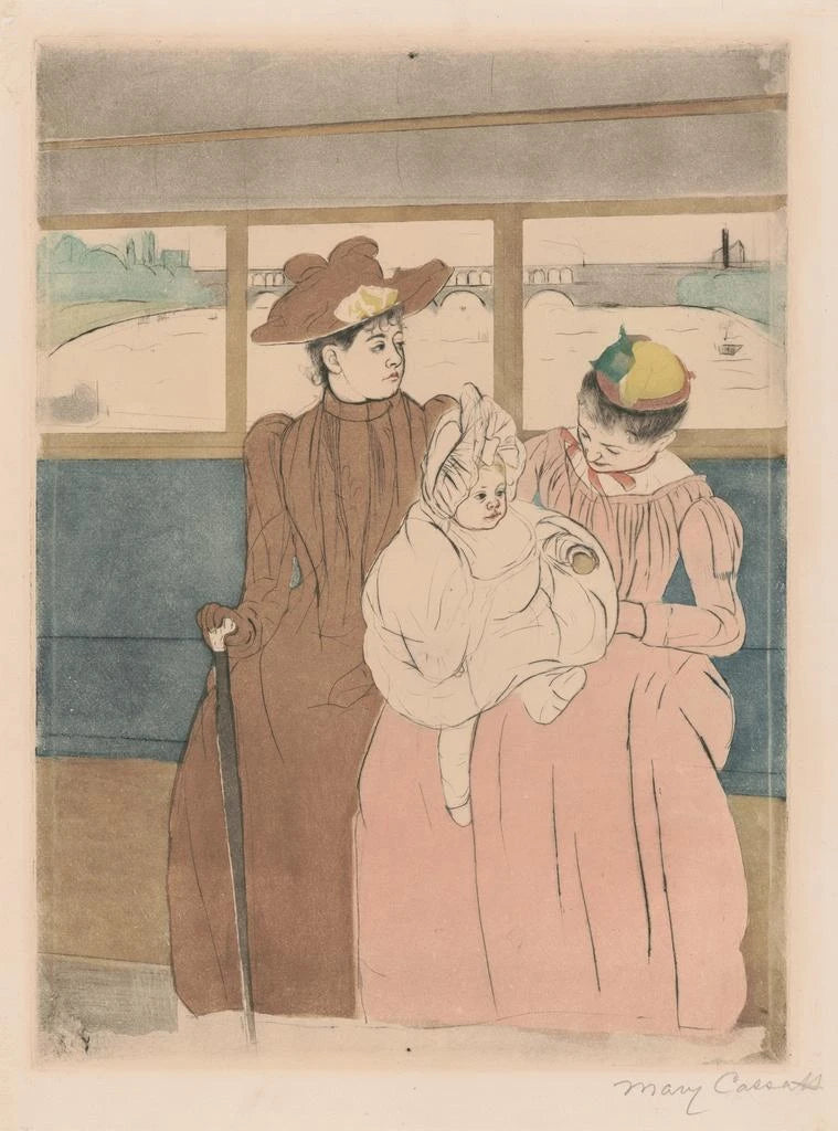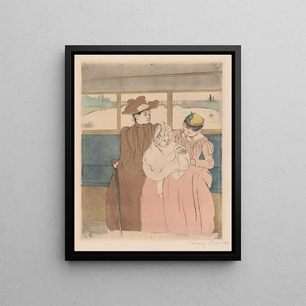 "En el autobús" de Mary Cassatt es una obra que ilustra perfectamente la vida cotidiana a finales del siglo XIX. Esta escena dinámica, donde los pasajeros se cruzan en un vehículo público, transmite una atmósfera de movimiento e interacción humana. Los colores vibrantes y los juegos de luz crean una sensación de inmediatez, mientras que la técnica impresionista de Cassatt permite captar la esencia fugaz de este momento. La composición, con sus figuras yuxtapuestas, invita al espectador a observar las relaciones y las emociones que emergen de esta situación ordinaria, transformada en una obra de arte vibrante.