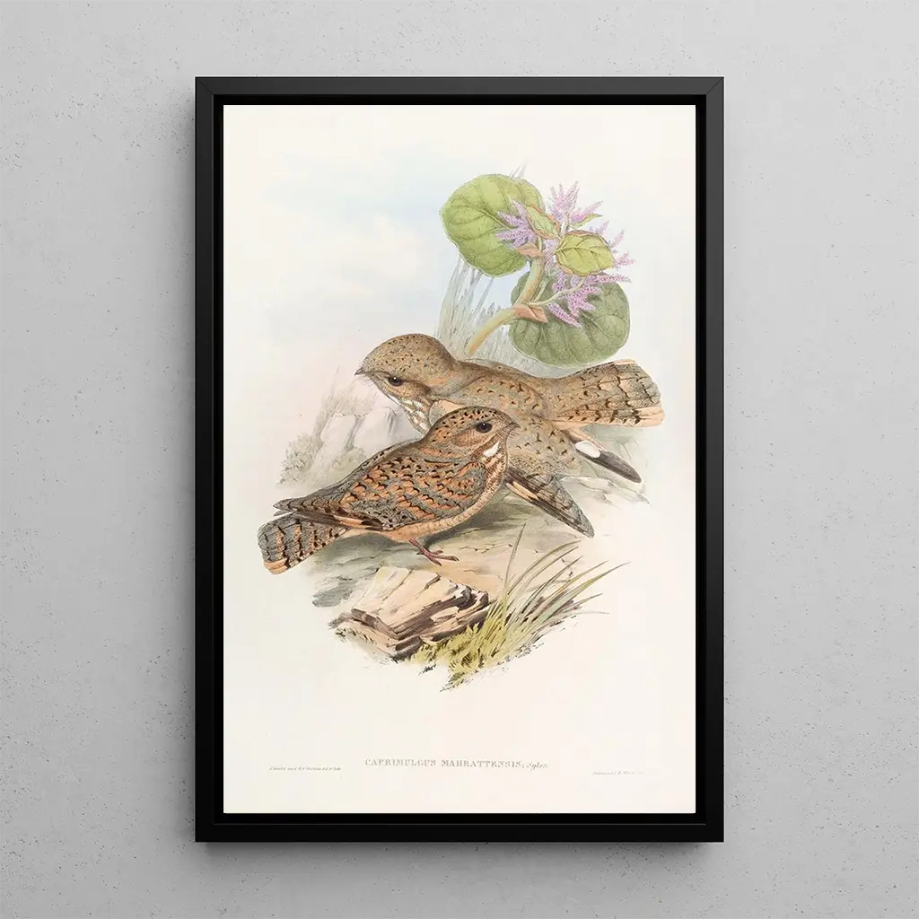 John Gould, naturalista y ornitólogo británico del siglo XIX, es reconocido por sus contribuciones principales al estudio de las aves. Su pasión por la ornitología lo llevó a viajar por todo el mundo, observando y documentando especies raras. Influenciado por el romanticismo y el realismo de su época, Gould supo combinar ciencia y arte, produciendo obras que hoy en día son referencias. Su trabajo tuvo un impacto significativo en la conservación de especies, rindiendo homenaje a la biodiversidad. La Engoulevent Mahratta es una de sus numerosas obras maestras, testimonio de su dedicación a la belleza de la naturaleza.