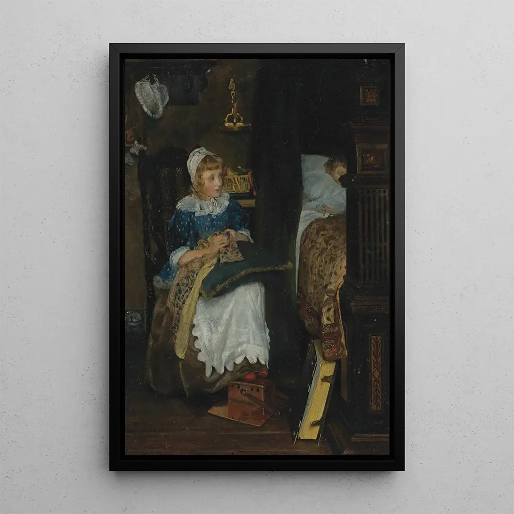 "Entre de bonnes mains" de Laura Theresa Alma-Tadema es una obra que evoca la dulzura y la ternura de las relaciones humanas. Este lienzo, rico en emociones, representa una interacción íntima entre los personajes, donde cada gesto está impregnado de delicadeza. Los colores pastel, asociados a detalles minuciosos, crean una atmósfera cálida y acogedora. La luz suave que baña la escena refuerza este sentimiento de cercanía, haciendo de esta obra un verdadero homenaje al amor y a la benevolencia.