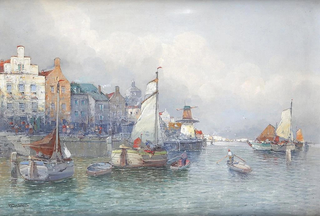Escena de puerto holandés - Georg Fischhof