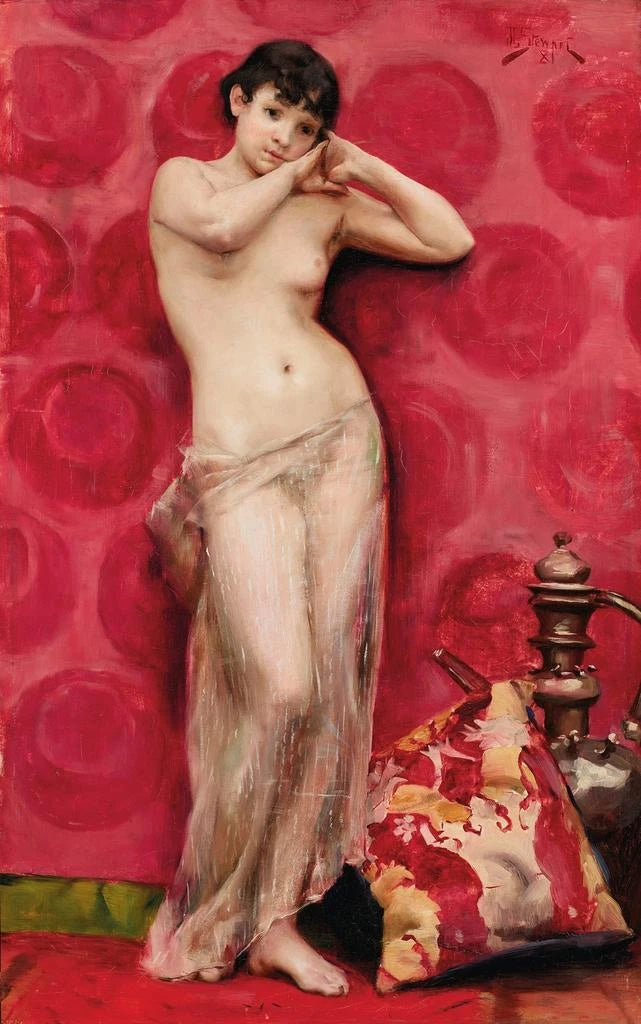 La obra "L'esclave" de Julius LeBlanc Stewart es una representación impactante que evoca el sufrimiento y la resistencia. La composición destaca un personaje central, cuya expresión melancólica atrae inmediatamente la mirada. Los colores oscuros y terrosos, combinados con toques de luz, crean una atmósfera a la vez dramática y emotiva. La técnica de Stewart, que mezcla realismo e impresiónismo, permite capturar las nuances del alma humana, haciendo que esta impresión artística sea especialmente conmovedora. Cada detalle, desde los pliegues de la tela hasta los rasgos del rostro, testimonia una maestría técnica que trasciende el simple retrato.