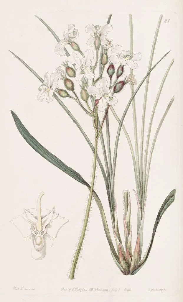 Sydenham Edwards, activo a principios del siglo XIX, marcó la historia de la impresión artística botánica con su enfoque único. Criado en un contexto donde la ciencia y el arte se unían, supo capturar la esencia de las plantas con una precisión notable. Su estilo, que combina rigor científico y sensibilidad artística, le convirtió en una figura emblemática en el campo. "Stylewort velu" ilustra perfectamente su talento, testimonio de su compromiso por representar la flora con una atención especial a los detalles y la estética.
