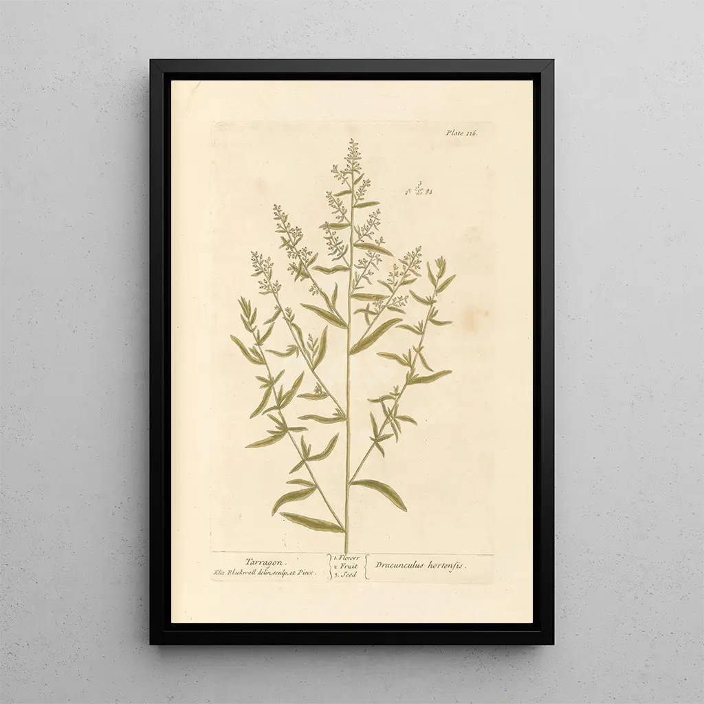La impresión artística de Estragón de Elizabeth Blackwell es una obra que celebra la belleza de las plantas medicinales. Con sus matices de verde y sus toques de amarillo, esta ilustración destaca el estragón, una hierba aromática apreciada por sus propiedades culinarias y medicinales. Blackwell, a través de su estilo distintivo, logra transmitir una atmósfera viva y dinámica, capturando la esencia misma de esta planta. Los detalles minuciosos y la composición armoniosa de la obra invitan a una contemplación atenta, revelando la riqueza de la biodiversidad.