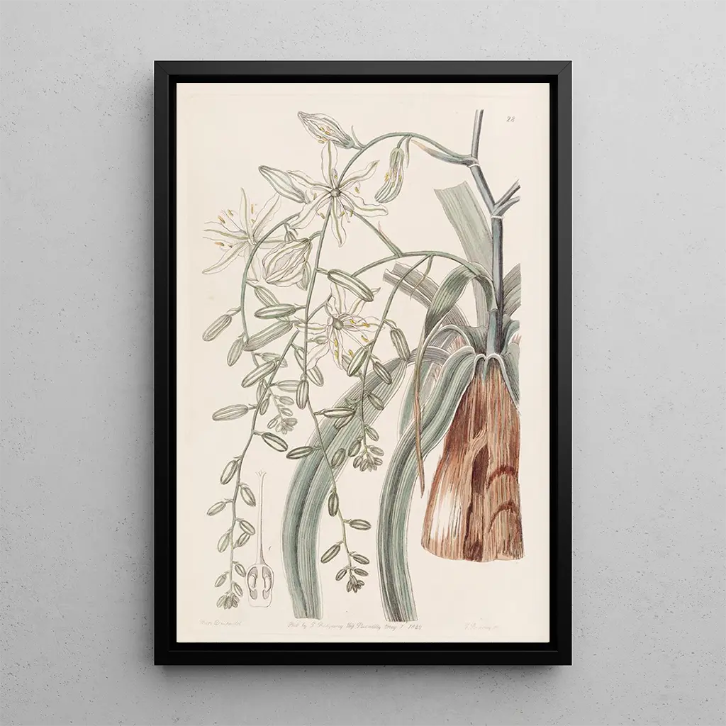 Étoile de Bethléem traînante : un símbolo de luz y esperanza La Étoile de Bethléem traînante, ilustrada por Sydenham Edwards, evoca una belleza delicada y luminosa. Con sus pétalos blancos brillantes y toques de verde, esta obra atrae la mirada y ilumina el espacio. La técnica de acuarela permite captar la transparencia de las flores, creando una atmósfera suave y soñadora. Cada detalle está cuidadosamente trabajado, revelando la gracia de esta planta emblemática, símbolo de renovación y esperanza, que invita a la contemplación y a la serenidad. Sydenham Edwards : un maestro de la ilustración botánica Sydenham Edwards, figura destacada de principios del siglo XIX, supo combinar arte y ciencia en sus ilustraciones botánicas. Su trabajo fue influenciado por el romanticismo, resaltando la belleza natural mientras respetaba la precisión científica. Edwards contribuyó a la documentación de muchas especies vegetales, desempeñando un papel clave en el auge de la impresión artística botánica. Sus obras, a menudo publicadas en tratados botánicos, permitieron sensibilizar al público sobre la riqueza de la flora, convirtiéndolo en un artista respetado y admirado. Una adquisición decorativa con múltiples ventajas La impresión artística de la Étoile de Bethléem traînante es una adición encantadora a cualquier decoración interior, ya sea en un salón, una oficina o un dormitorio. Su calidad de impresión garantiza fidelidad en los colores y detalles de la obra original, aportando un toque de frescura y luminosidad a su espacio. Este cuadro, a la vez elegante y relajante, invita a la ensoñación y a la contemplación, haciendo de su interior un refugio de paz y belleza natural. Al elegir esta tela, enriquece su decoración mientras celebra el arte botánico.