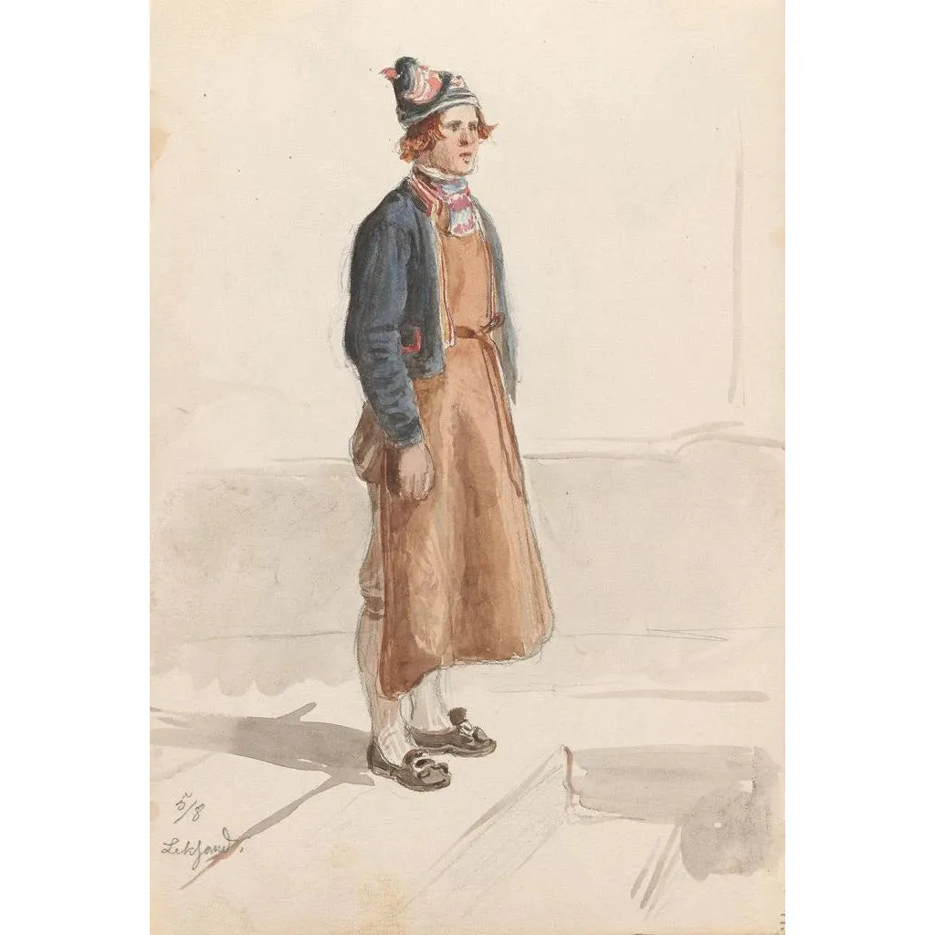 Adolph Tidemand, pintor noruego del siglo XIX, es reconocido por su papel en el movimiento romántico escandinavo. Influenciado por los paisajes majestuosos de su país natal y por las tradiciones folclóricas, Tidemand supo capturar el alma de Noruega a través de sus obras. Su carrera, marcada por viajes por Europa, le permitió perfeccionar su estilo e incorporar elementos de la pintura histórica. La importancia de Tidemand radica en su capacidad para inmortalizar las costumbres y escenas de la vida cotidiana, convirtiéndolo en un testigo privilegiado de su época. Sus cuadros, como "Estudio de traje Leksand", son ventanas abiertas a un pasado rico y vibrante.