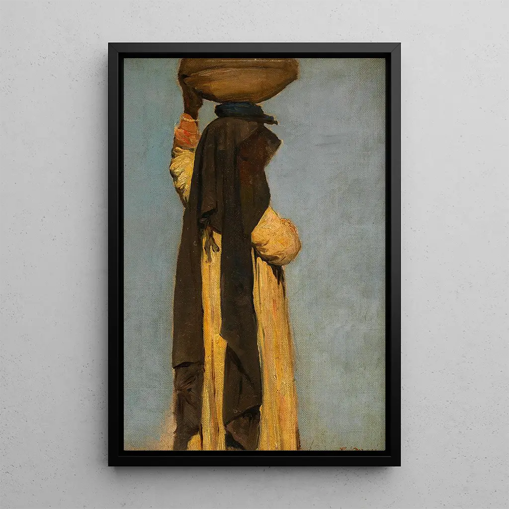 Estudio de figura de una Arabe llevando una bandeja: una escena de vida impactante La obra "Estudio de figura de una Arabe llevando una bandeja" de Leopold Carl Müller ofrece una visión fascinante de la vida cotidiana en las sociedades orientales. La composición destaca a una mujer, elegantemente vestida, que lleva una bandeja cargada de frutas u objetos, simbolizando la hospitalidad y la generosidad. Los colores vibrantes y los detalles minuciosos de su vestimenta tradicional, así como la expresión de su rostro, transmiten una atmósfera de serenidad y dignidad. Este estudio, además de ser un retrato, evoca también un momento de vida, capturando la esencia misma de la cultura árabe. Leopold Carl Müller: un pionero del orientalismo Leopold Carl Müller, pintor austríaco del siglo XIX, es famoso por sus representaciones de escenas orientales, influenciadas por sus viajes en África del Norte y Oriente Medio. Su estilo, que combina realismo y romanticismo, le permite crear obras impregnadas de poesía y autenticidad. Müller supo capturar la belleza de los paisajes y la riqueza de las culturas que encontró, convirtiéndolo en una figura emblemática del orientalismo. "Estudio de figura de una Arabe llevando una bandeja" ilustra perfectamente su talento para inmortalizar momentos de vida, rindiendo homenaje a la diversidad de tradiciones. Una adquisición decorativa con múltiples ventajas La impresión artística de "Estudio de figura de una Arabe llevando una bandeja" es una elección ideal para enriquecer su decoración interior. Ya sea en una sala de estar, una oficina o un dormitorio, este lienzo aporta un toque de exotismo y elegancia. Su calidad de impresión y fidelidad a la obra original garantizan un atractivo estético indiscutible. Al integrar esta obra en su espacio, crea una atmósfera cálida y acogedora, celebrando la belleza del arte oriental. Este cuadro se convierte así en un verdadero punto focal, despertando la admiración y el interés de sus invitados.