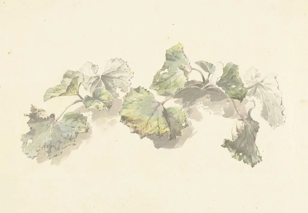 La obra "Estudio de hojas" de Josephus Augustus Knip evoca la belleza efímera de la naturaleza a través de una composición minuciosa. Los detalles de las hojas, representados con una precisión notable, capturan la luz y la sombra, creando una atmósfera serena y contemplativa. Las tonalidades de verde, amarillo y marrón se mezclan armoniosamente, ofreciendo una paleta que recuerda las estaciones cambiantes. La técnica de la acuarela, utilizada con delicadeza, permite transmitir la ligereza y la transparencia de las hojas, invitando al espectador a una inmersión en un mundo vegetal rico y vibrante.