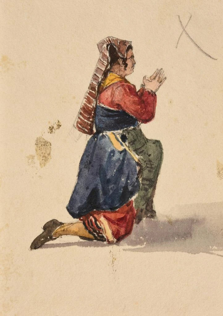Estudio de mujer arrodillada : una captura de la gracia femenina