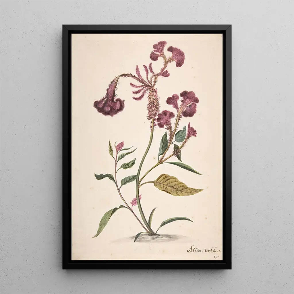 La obra "Étude d'un Hanekam" de Alida Withoos es una representación fascinante de la belleza natural. Con colores suaves y detalles minuciosos, este lienzo evoca una atmósfera de serenidad y contemplación. La técnica de la artista, que combina acuarela y dibujo, permite capturar la luz y las sombras de una manera que da vida a la composición. Las formas orgánicas y las texturas delicadas crean una armonía visual, invitando al espectador a sumergirse en el universo floral que florece ante él.
