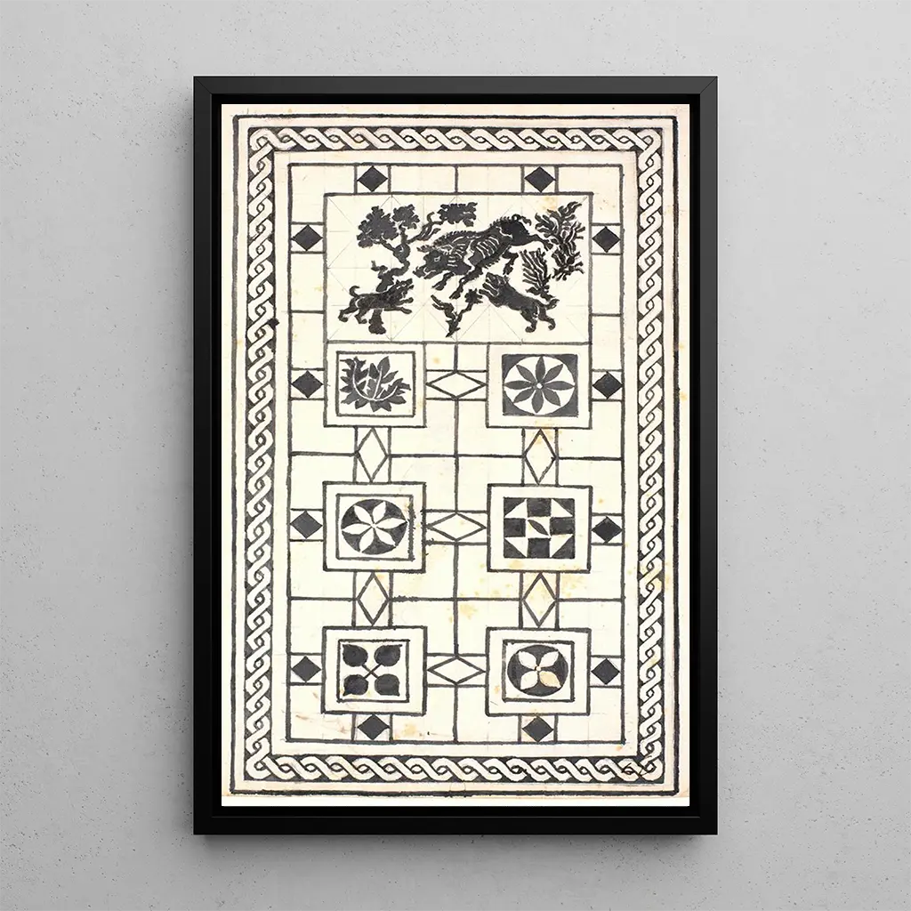 La impresión artística de "Estudio de un suelo pompeyense" es una pieza decorativa ideal para enriquecer su interior, ya sea en una sala, una oficina o un dormitorio. Su calidad de reproducción fiel permite sentir toda la belleza de la obra original, aportando a la vez un toque de elegancia y cultura a su decoración. Con su atractivo estético indiscutible, este cuadro sabrá cautivar a los amantes del arte y a los apasionados de la historia. Regálese una ventana al pasado y deje que esta obra se convierta en el punto focal de su espacio.