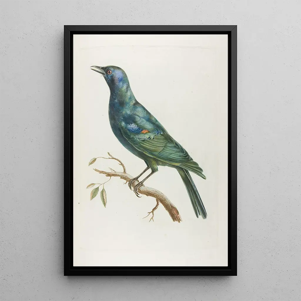 L'Étourneau d'Afrique, obra emblemática de François Levaillant, nos transporta a un mundo donde la belleza de los pájaros se mezcla con la riqueza de los colores. Este cuadro, a la vez vivo y delicado, captura la esencia misma del pájaro en su hábitat natural. Los tonos brillantes de verde y azul se entrelazan armoniosamente, creando una atmósfera alegre y dinámica. La técnica del artista, combinando precisión y sensibilidad, permite sentir la ligereza del plumaje y la energía del Étourneau. Cada detalle, cada pincelada, parece vibrar al ritmo de la naturaleza, invitando al espectador a una contemplación maravillada.
