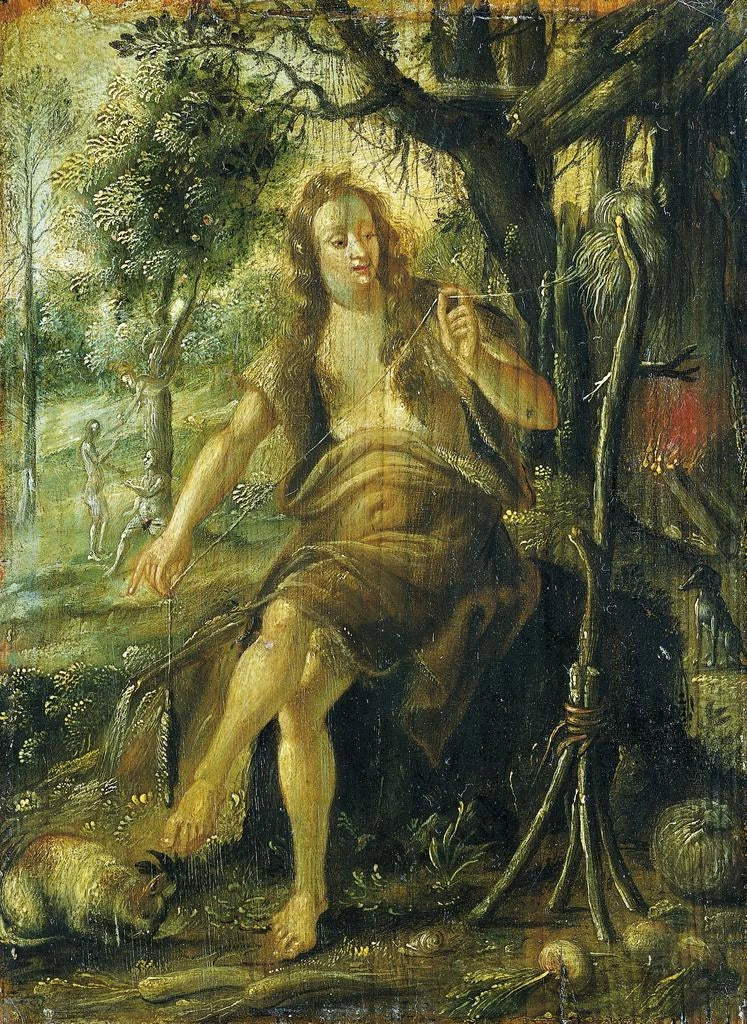 Hans Ammon, activo a principios del siglo XX, es reconocido por su estilo simbolista que combina sueño y realidad. Influenciado por las corrientes artísticas de su época, supo crear obras llenas de misterio y poesía. "Ève filando" se inscribe en un período en el que el arte buscaba expresar ideas profundas y emociones complejas. Ammon, a través de sus representaciones de figuras femeninas, contribuyó a redefinir el papel de la mujer en el arte, presentándola no solo como un objeto de belleza, sino también como una fuente de inspiración y fuerza.