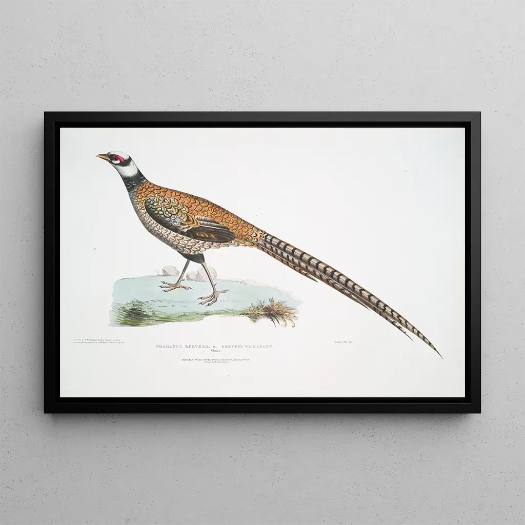 Faisán de Reeves, Phasianus reevesii : una espléndida belleza ornitológica para admirar La impresión artística del Faisán de Reeves, Phasianus reevesii, nos sumerge en un mundo colorido y fascinante. Este cuadro, lleno de detalles, presenta un ave majestuosa con plumas vibrantes, donde se combinan tonos de verde, azul y dorado. La técnica de acuarela, utilizada con delicadeza, permite captar la ligereza del plumaje y la delicadeza de los trazos. La atmósfera que emana de esta obra es a la vez serena y cautivadora, invitando al espectador a maravillarse ante la belleza de la naturaleza. Cada pincelada parece respirar vida, haciendo de esta impresión artística un verdadero homenaje a la fauna aviar. John Edward Gray : un pionero de la ornitología victoriana John Edward Gray, naturalista y zoólogo británico del siglo XIX, desempeñó un papel fundamental en el estudio de las aves. Sus obras, a menudo inspiradas por sus viajes y observaciones, reflejan un profundo respeto por la naturaleza. Como conservador en el Museo Británico, contribuyó a la clasificación de muchas especies, al mismo tiempo que popularizó la ornitología entre el gran público. El Faisán de Reeves se inscribe en un período en el que el interés por la biodiversidad y la conservación de especies estaba en pleno auge. Gray, con su enfoque científico y artístico, supo capturar la esencia misma de estas criaturas fascinantes, dejando un legado duradero en el mundo del arte y la ciencia. Una adquisición decorativa con múltiples ventajas Esta impresión artística del Faisán de Reeves es una pieza decorativa ideal para enriquecer su interior, ya sea en una sala de estar, una oficina o un dormitorio. Su calidad de impresión garantiza una fidelidad notable a la obra original, permitiendo disfrutar de cada matiz y detalle. El atractivo estético de este cuadro radica en su capacidad para aportar un toque de naturaleza y elegancia a su decoración. Al elegir esta tela, opta por una obra que no solo embellece su espacio, sino que también despierta la curiosidad y la admiración de sus invitados. Una elección perfecta para los amantes del arte y la naturaleza.