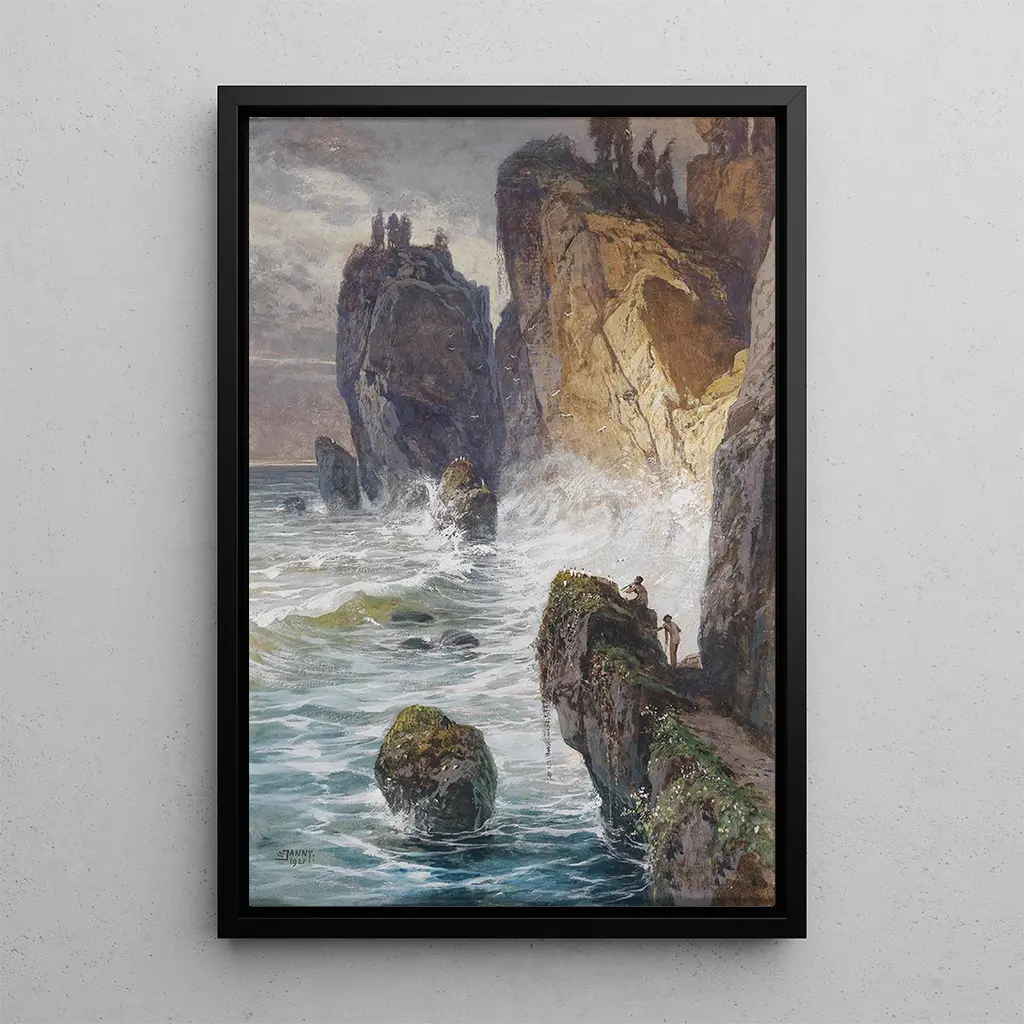 "Faunes en una costa rocosa" de Georg Janny es una obra cautivadora que evoca una escena mitológica donde criaturas mitad humanas, mitad animales, se mezclan con la belleza salvaje de la naturaleza. Los colores vibrantes y los juegos de luz sobre las rocas y el agua crean una atmósfera viva y dinámica. La composición, rica en detalles, invita al espectador a explorar las interacciones entre los faunes y su entorno, simbolizando la armonía entre el hombre y la naturaleza. La técnica de Janny, combinando realismo y toques impresionistas, da vida a esta escena encantada, llena de movimiento y misterio.