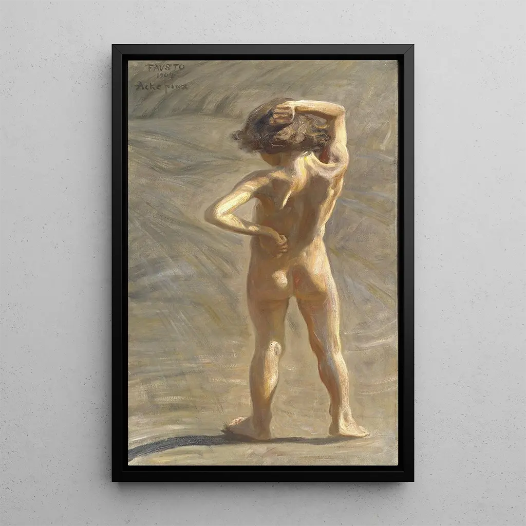 En esta obra, Fausto Estudio de un joven desnudo, JAG Acke captura la belleza efímera de la juventud a través de una composición delicada y emotiva. Los colores suaves y las tonalidades de piel se entrelazan para crear una atmósfera íntima, donde la luz juega sobre la piel del modelo, acentuando su fragilidad. La técnica del artista, combinando realismo y impresiónismo, permite sentir la suavidad del momento, como una caricia visual. Cada detalle, desde la mirada pensativa del joven hasta los pliegues de su cuerpo, evoca una sensación de tranquilidad y contemplación, invitando al espectador a reflexionar sobre la inocencia y la belleza de la infancia.