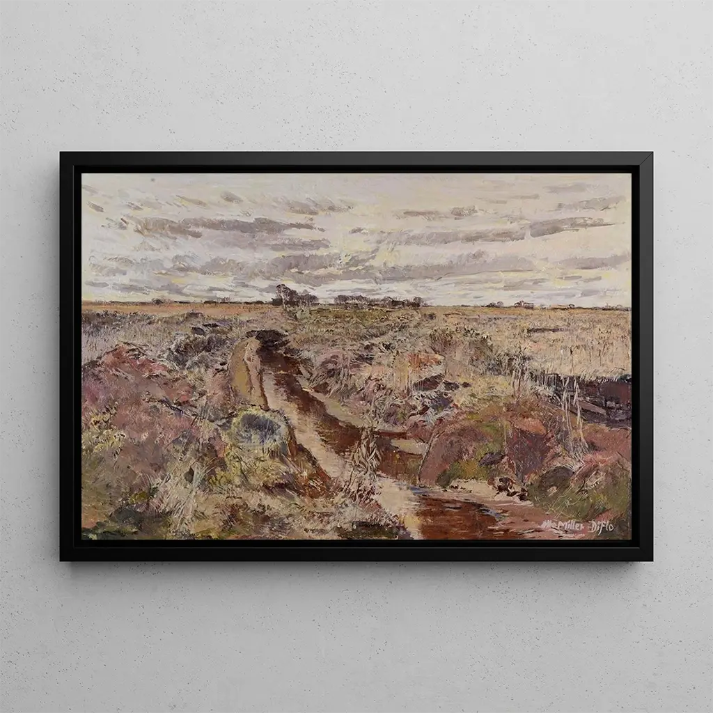 La impresión artística "Soirée d'automne dans la mousse" de Otto Mueller evoca una atmósfera tranquila y contemplativa. Los colores cálidos del otoño, que van desde los naranjas hasta los marrones profundos, se combinan armoniosamente para crear una escena donde la naturaleza parece vibrar. La técnica del artista, caracterizada por pinceladas fluidas y expresivas, da vida a un paisaje donde la luz juega un papel esencial, iluminando los detalles de la mousse y las hojas. Esta obra invita al espectador a sumergirse en un mundo de serenidad, donde cada elemento parece contar una historia.