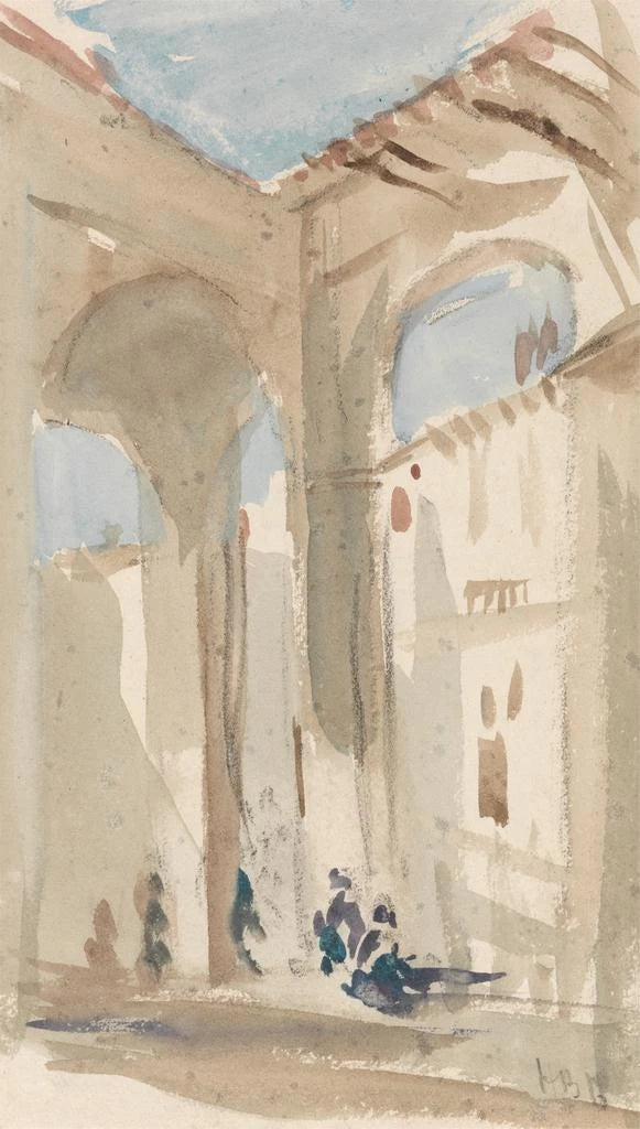 La impresión artística "Figuras en una columnata oriental" de Hercules Brabazon Brabazon transporta al espectador a un mundo lleno de exotismo y misterio. Las figuras humanas, vestidas con trajes coloridos, se desplazan con gracia bajo los arcos adornados de la columnata. La luz, filtrada por las columnas, crea juegos de sombra que añaden profundidad a la escena. Los colores vibrantes y los detalles minuciosos reflejan el talento de Brabazon para capturar la vida y la energía de un momento. Esta obra invita a la contemplación, evocando una atmósfera cálida y intrigante.