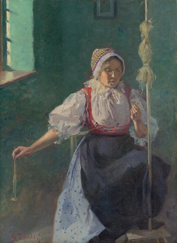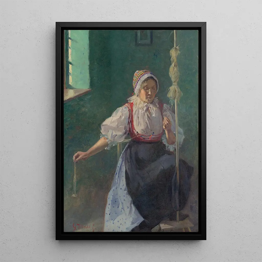En "Fileuse", Gustav Mahler captura la esencia de un momento tranquilo donde el tiempo parece suspendido. La tela, bañada en tonos suaves y cálidos, evoca una atmósfera de tranquilidad. Las líneas fluidas y las formas delicadas dibujan a una mujer absorta en su actividad, simbolizando la belleza del trabajo manual. La luz suave que ilumina la escena crea un contraste sutil, resaltando los detalles del tejido y la concentración de la filadora. Esta obra invita a una contemplación introspectiva, donde cada mirada revela una nueva nuance de la vida cotidiana.