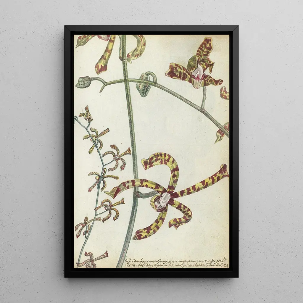 Jan Brandes, pintor neerlandés del siglo XVIII, es reconocido por sus obras que capturan la riqueza de la flora exótica. Influenciado por los viajes y los descubrimientos botánicos de su época, supo integrar elementos de la naturaleza en sus composiciones. Brandes también fue un miembro activo de la comunidad artística de su tiempo, contribuyendo a la aparición del estilo neerlandés en el campo de la impresión artística floral. Sus obras, incluida la Fleur d'Inde orientale cambang matjang, testimonian una época en la que el exotismo y la curiosidad por el mundo natural estaban en su apogeo.