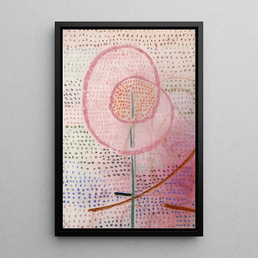 En "Floración", Paul Klee nos invita a sumergirnos en un universo vibrante donde los colores estallan y se mezclan con una ligereza poética. Esta obra, a la vez abstracta y figurativa, evoca una naturaleza en plena efervescencia. Las formas orgánicas, casi infantiles, se despliegan sobre el lienzo, creando un diálogo entre el sueño y la realidad. Los tonos pastel, combinados con toques más vivos, infunden una atmósfera alegre y lúdica, típica del estilo de Klee. Cada detalle parece bailar, revelando una floración no solo de la naturaleza, sino también de la imaginación.