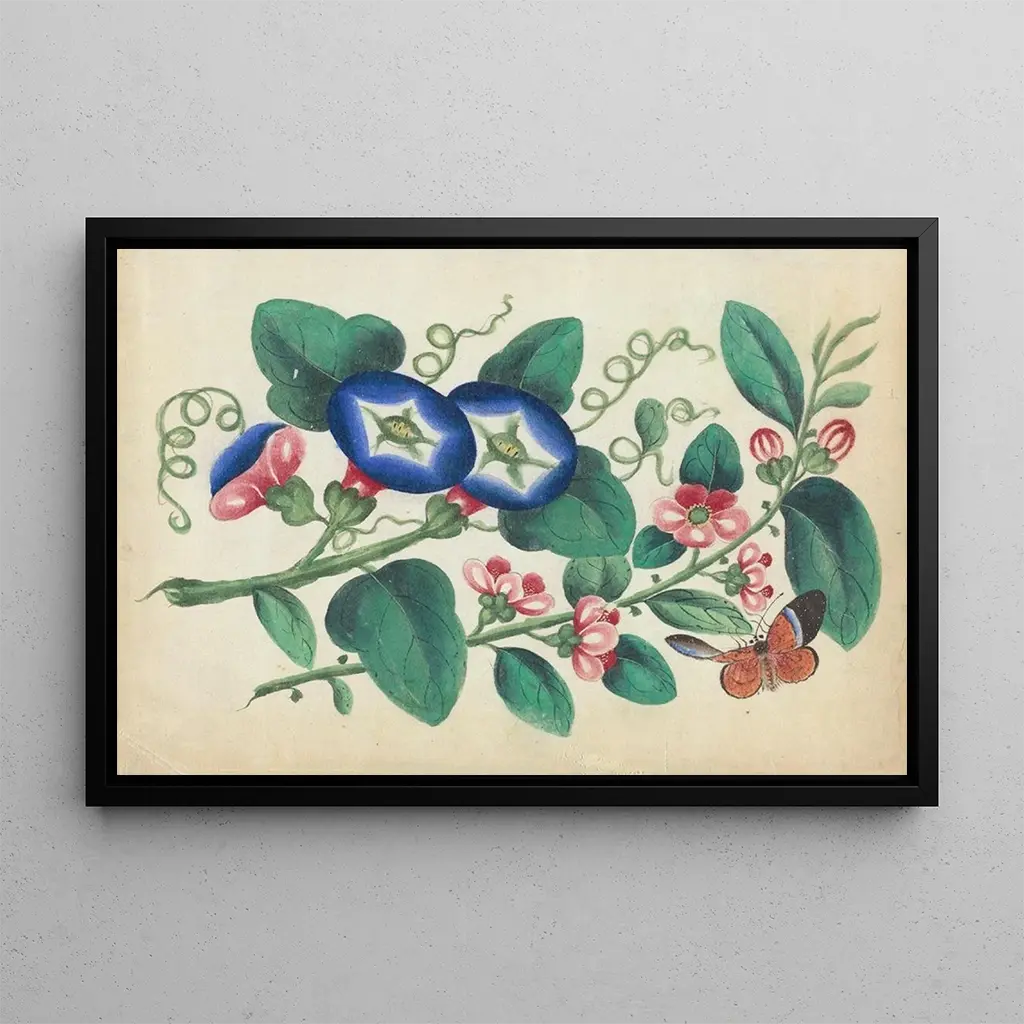 Impresión artística Fleurs con mariposa: una delicada armonía de la naturaleza