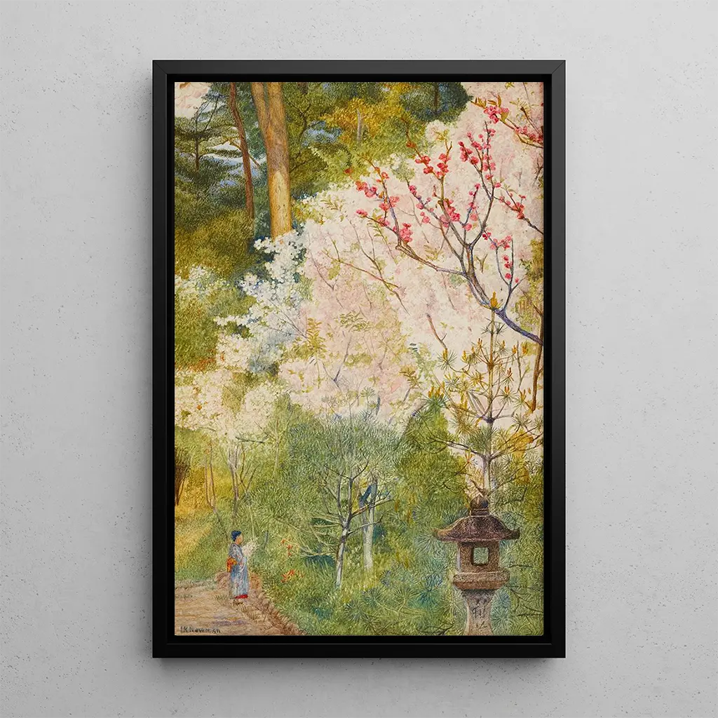 "Fleurs de cerezo en Kioto" de Henry Roderick Newman captura la magia de los cerezos en flor, símbolo de la belleza fugaz de la naturaleza. Los tonos pastel, que van desde el rosa delicado hasta el blanco puro, se mezclan armoniosamente para crear una atmósfera tranquila y soñadora. La técnica de Newman, que favorece los golpes de pincel suaves y fluidos, da vida a cada pétalo, evocando la dulzura de una primavera japonesa. Esta impresión artística invita a la contemplación, recordándonos que la belleza a menudo reside en lo efímero.
