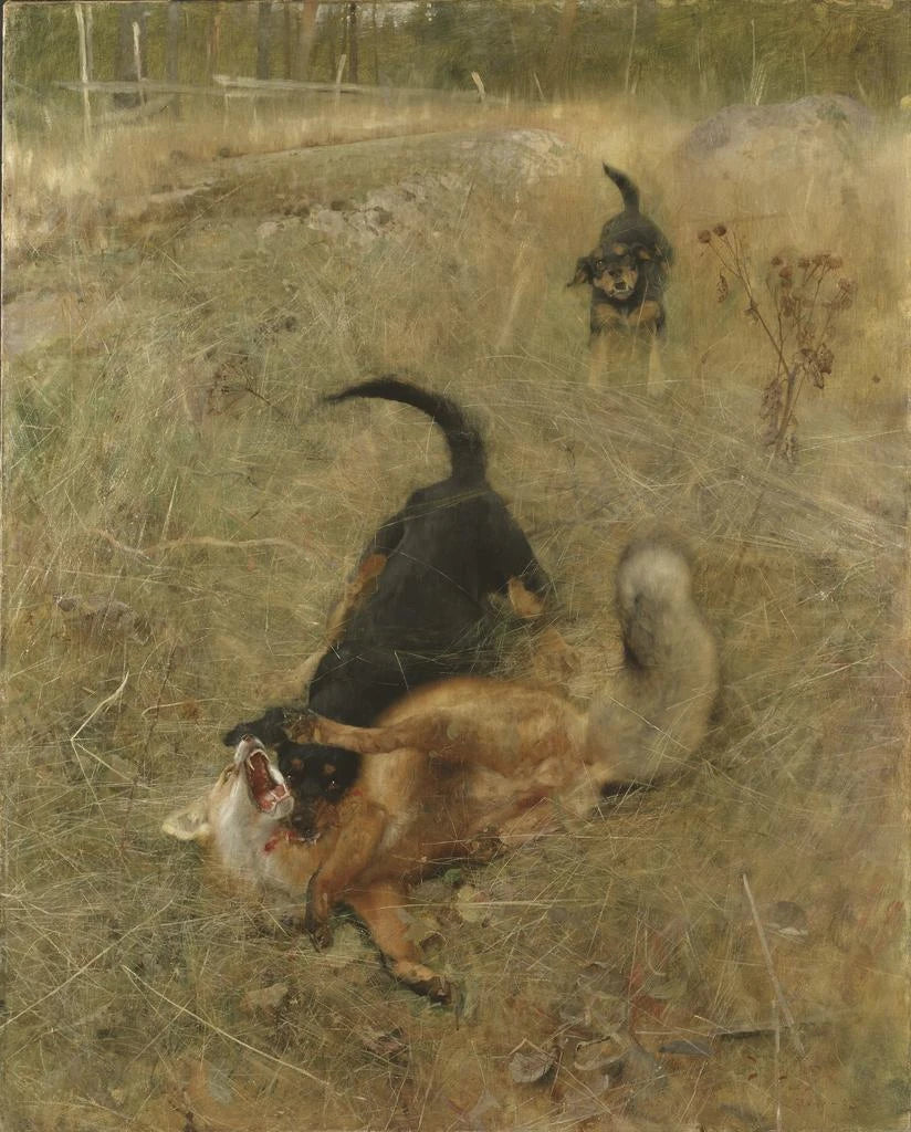 Reproducción Foxhound sueco y zorro - Bruno Liljefors – Introducción cautivadora
