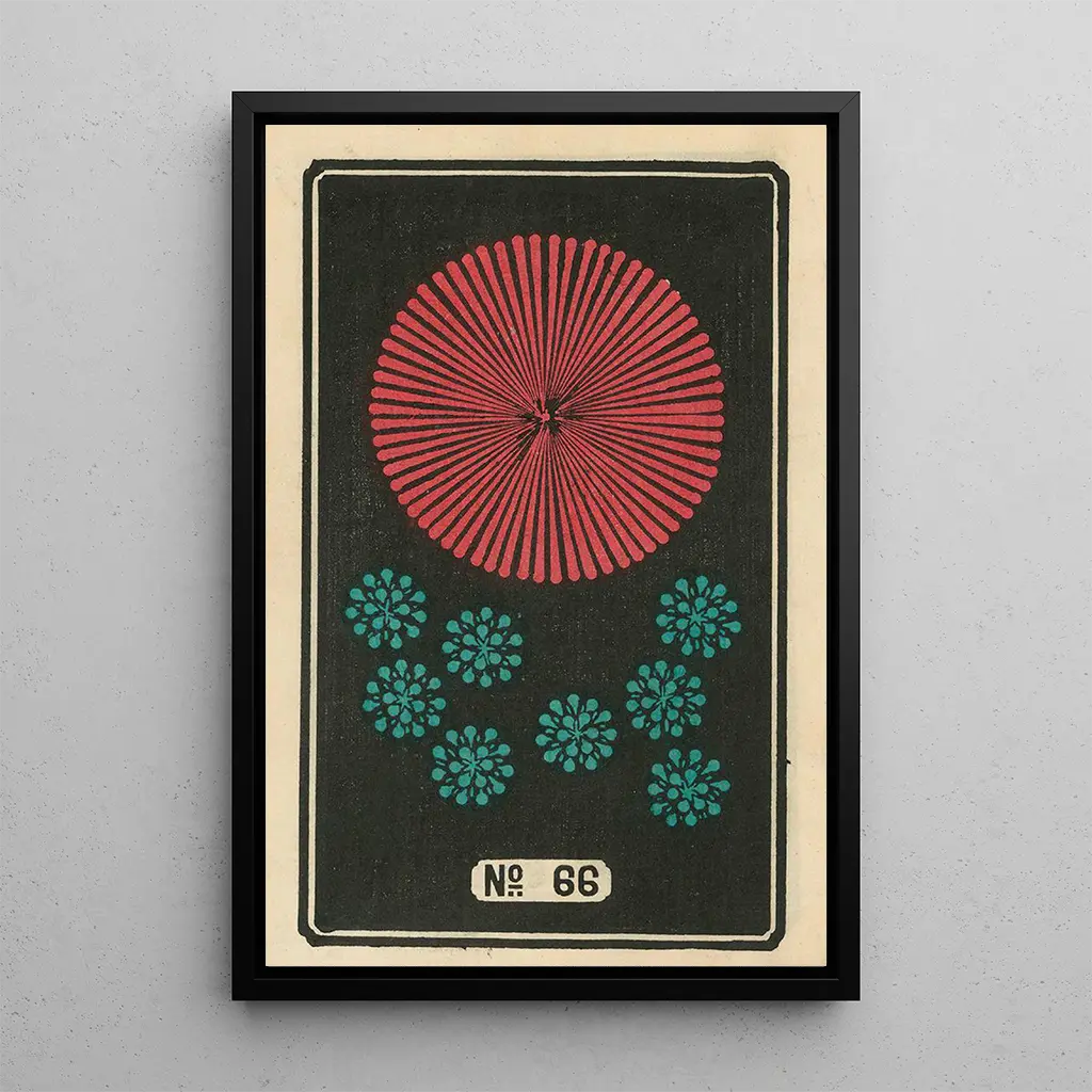 En esta impresión artística de la obra "Noches de fuegos artificiales n° 66", Jinta Hirayama nos transporta a un universo vibrante donde la noche se ilumina con mil fuegos. Los destellos coloridos, que van desde el rojo ardiente hasta el azul tranquilizador, se entrelazan en una danza hipnótica, evocando la magia de las celebraciones estivales. La técnica de la acuarela, dominada con delicadeza, permite crear matices sutiles que dan vida a cada explosión. La atmósfera es a la vez festiva y contemplativa, invitando al espectador a sumergirse en este cuadro y a sentir el asombro de un cielo estrellado salpicado de fuegos artificiales.