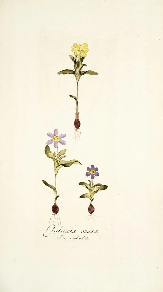 Nikolaus Joseph Freiherr von Jacquin, botánico y artista del siglo XVIII, supo combinar ciencia y arte en sus creaciones. Nacido en 1727, fue influenciado por los descubrimientos botánicos de su época, especialmente durante sus viajes en América del Sur. Sus obras, incluida Galaxia ovata, reflejan su compromiso de representar la flora con precisión científica, manteniendo una dimensión estética. Jacquin es reconocido por haber contribuido al auge de la botánica artística, un campo que ha permitido documentar la diversidad de especies vegetales mientras seduce a un público ávido de belleza y conocimiento.