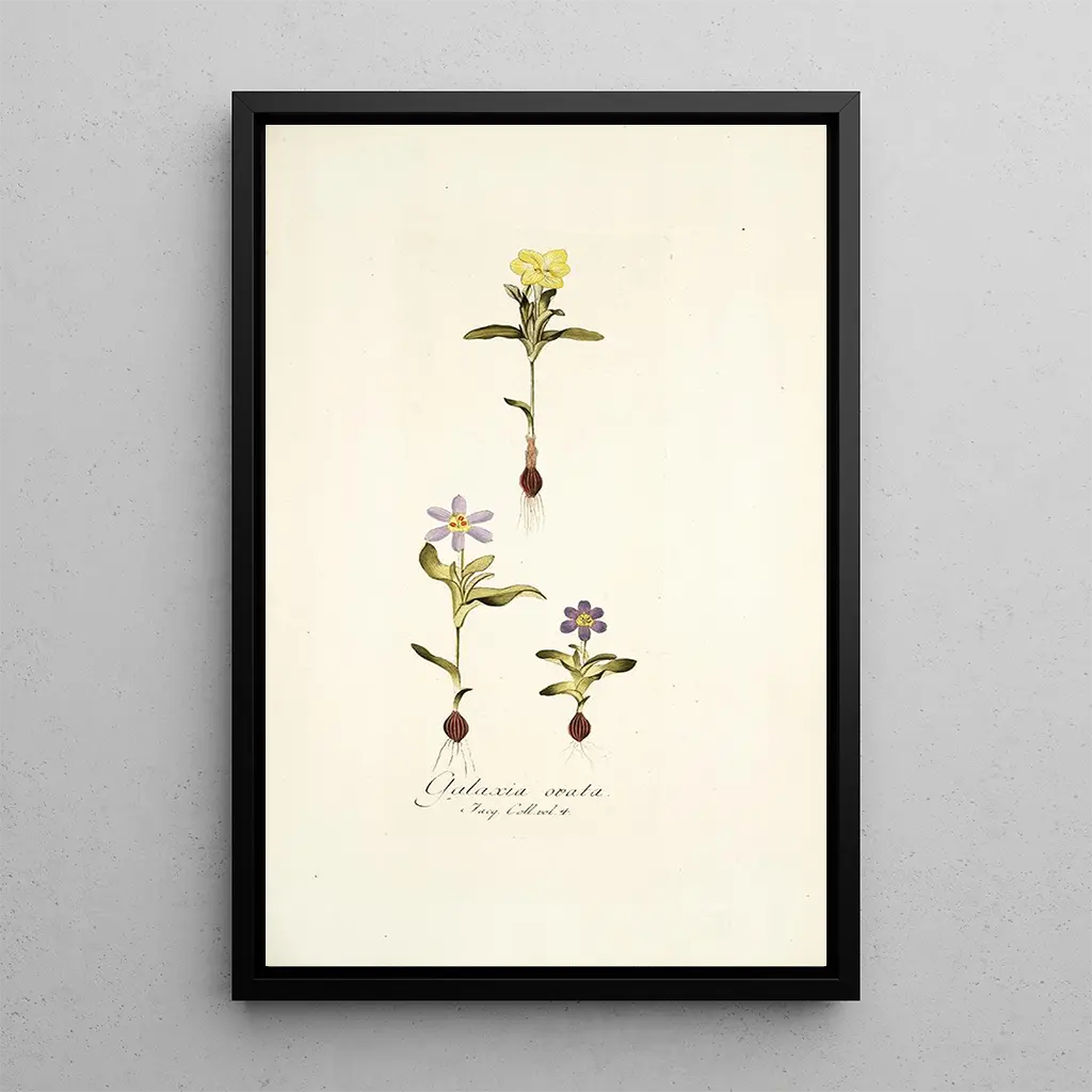 La impresión artística de Galaxia ovata nos sumerge en un universo botánico fascinante, donde los matices de verde y azul se entrelazan armoniosamente. Las delicadas hojas, con contornos redondeados, parecen desplegarse con gracia, evocando una ligereza casi aérea. La técnica de acuarela, dominada por Nikolaus Joseph Freiherr von Jacquin, ofrece una transparencia que da vida a cada detalle, rindiendo homenaje a la belleza de la naturaleza. La atmósfera que emana de esta obra invita a la contemplación, como si cada pincelada contara una historia de crecimiento y florecimiento.