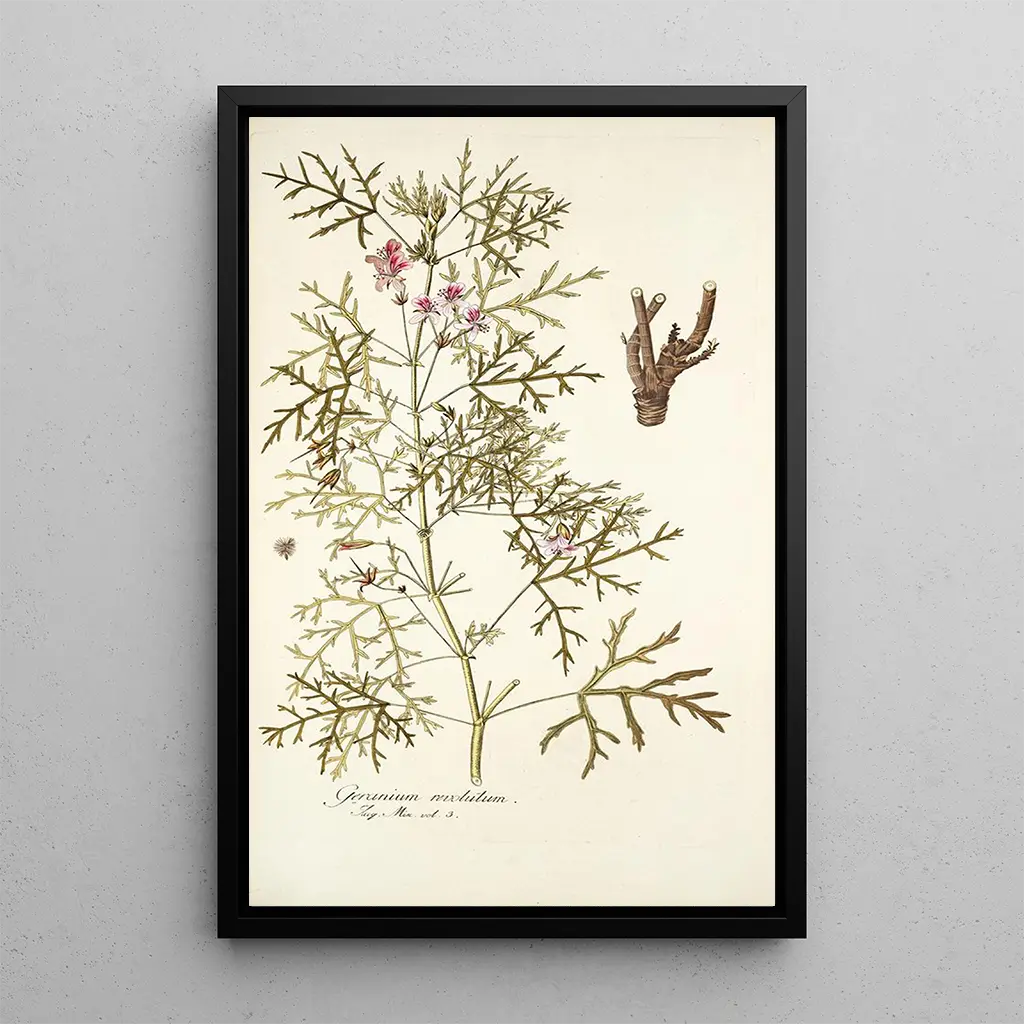 La impresión artística Geranio revolutum de Nikolaus Joseph Freiherr von Jacquin es una verdadera oda a la belleza de la naturaleza. Esta obra, realizada con una precisión botánica impresionante, destaca las delicadas flores de geranio, cuyas tonalidades de rosa y violeta se mezclan armoniosamente con un fondo verde. La técnica de acuarela, utilizada con maestría, confiere a esta obra una ligereza y una transparencia que cautivan la mirada. La atmósfera que emana de esta impresión artística es a la vez serena y revitalizante, invitando al espectador a sumergirse en un universo floral lleno de detalles.