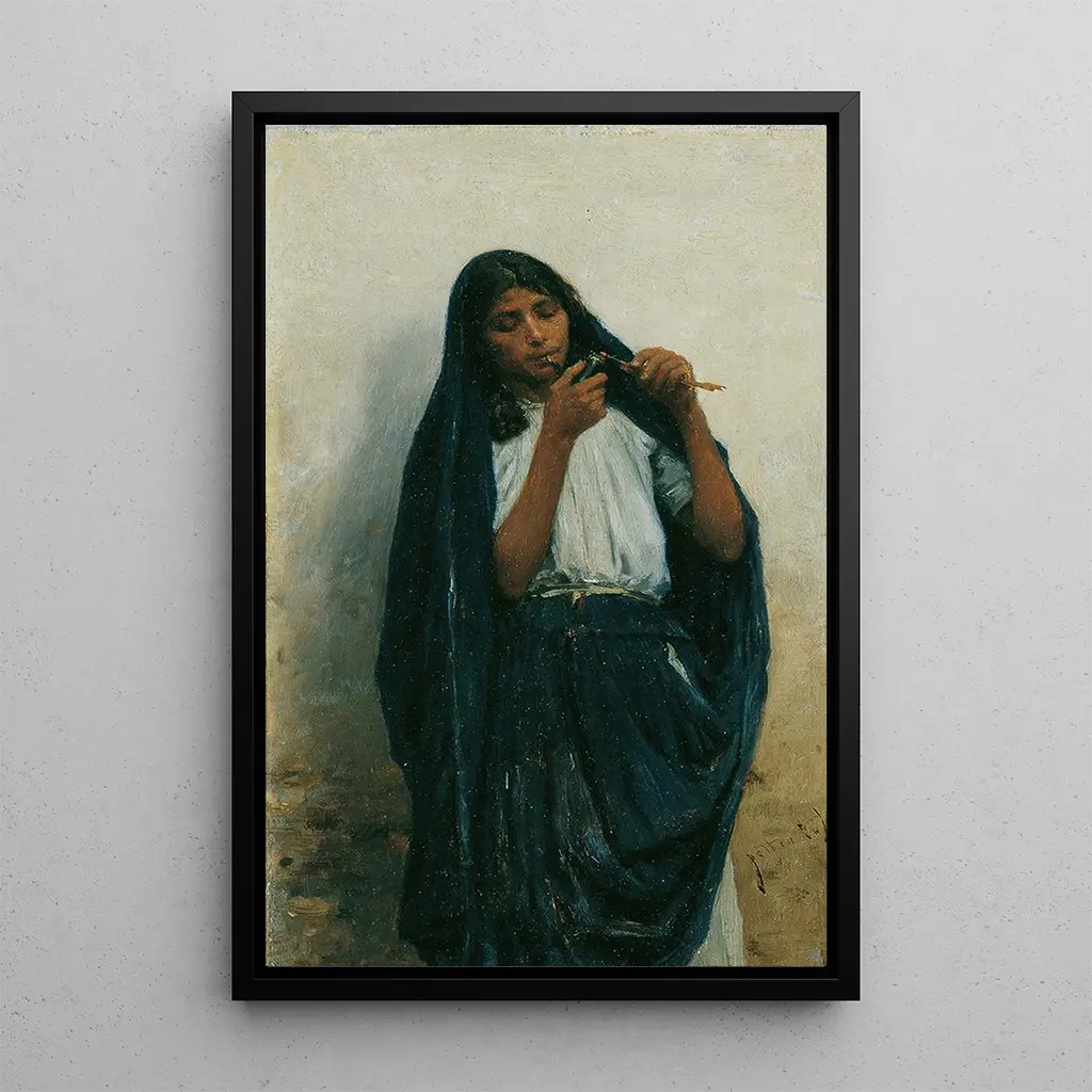 La impresión artística de la obra "Gitane" de August von Pettenkofen captura con brillantez la esencia de una bailarina gitana en plena actuación. Los colores vivos y cálidos, como el rojo y el oro, evocan la pasión y la vitalidad de la cultura gitana. La técnica del artista, combinando realismo y toques impresionistas, crea una atmósfera vibrante donde el movimiento parece casi palpable. La mirada cautivadora de la bailarina, junto con su vestimenta ricamente adornada, atrae inmediatamente la atención e invita a sumergirse en el universo envolvente de la música y la danza.