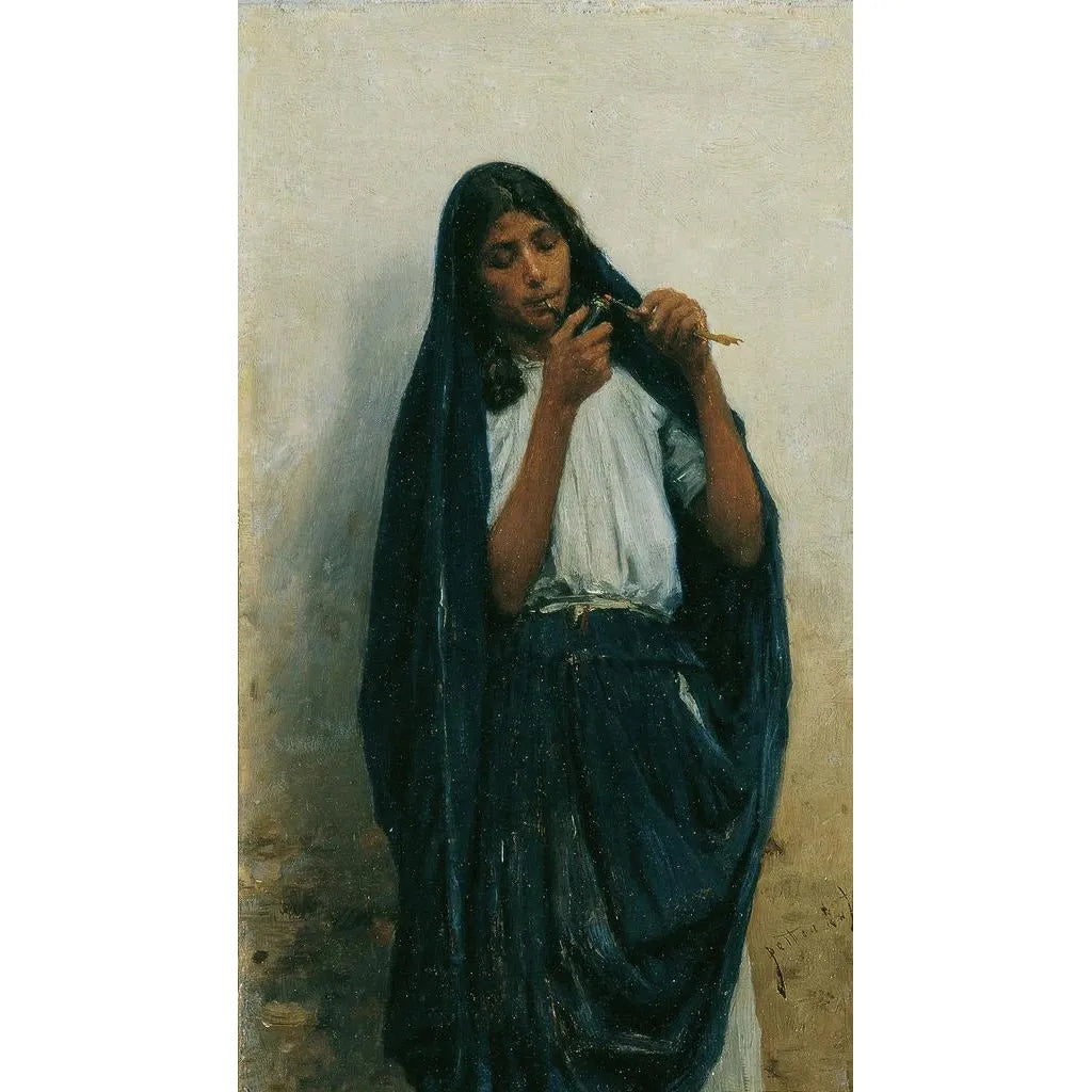 August von Pettenkofen, pintor austríaco del siglo XIX, es reconocido por sus representaciones de la vida cotidiana y escenas folclóricas. Influenciado por el movimiento romántico, supo capturar la belleza de las tradiciones populares, especialmente las de las comunidades gitanas. Su obra se inscribe en un período donde el Orientalismo y el interés por culturas exóticas fascinaban a los artistas europeos. A través de sus lienzos, von Pettenkofen contribuyó a dar a conocer la riqueza de la cultura gitana, al mismo tiempo que destacaba los desafíos sociales de su época.