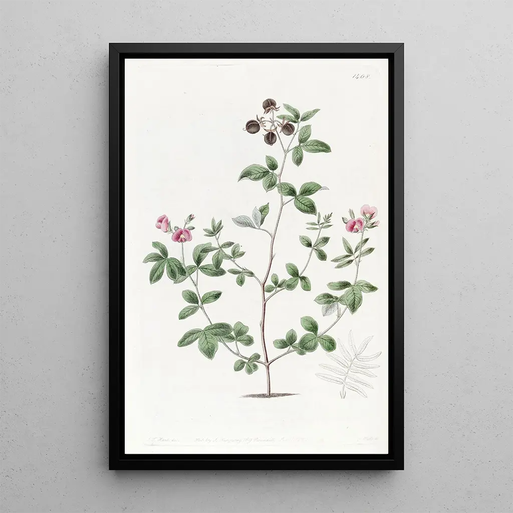 La impresión artística de Gompholobium de M. Knight nos transporta a un mundo donde la diversidad floral se destaca con brillo. Los tonos delicados de rosa y violeta se entrelazan con matices de verde, creando un cuadro armonioso y vivo. La técnica de acuarela, utilizada con finura, da una sensación de ligereza y fluidez, como si las flores estuvieran en movimiento. Cada detalle está cuidadosamente representado, invitando al espectador a explorar la belleza sutil de esta planta única, mientras evoca una sensación de serenidad y asombro.