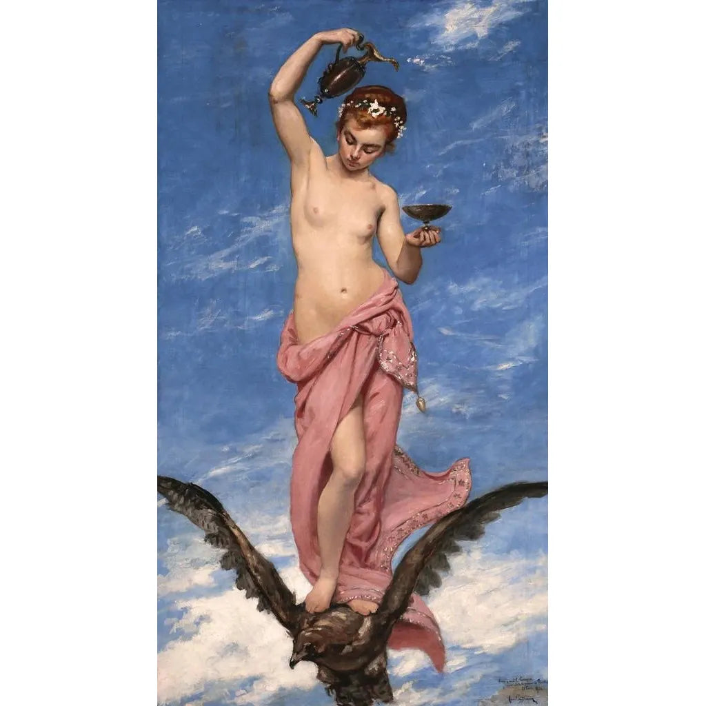 La impresión artística de Hébé de Carolus-Duran es una celebración de la juventud y de la belleza divina. Esta obra representa a la diosa de la juventud, a menudo asociada con la vitalidad y la frescura. Los colores luminosos y las tonalidades delicadas de la piel crean una atmósfera aérea, casi etérea. La maestría de Duran en el renderizado de los drapeados y las expresiones faciales da vida a esta figura mitológica, haciéndola a la vez accesible y fascinante. Cada pincelada parece infundir una energía viva en la tela, invitando al espectador a admirar la gracia y la ligereza de la escena.