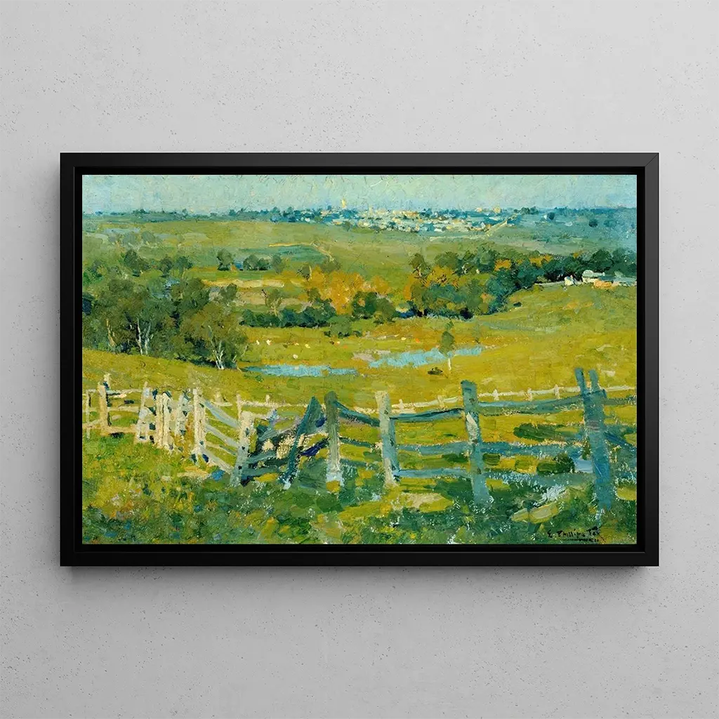E. Phillips Fox, figura emblemática del impresionismo australiano, supo capturar la esencia de la luz y los paisajes. Nacido en 1866, fue influenciado por los grandes maestros europeos, especialmente Monet y Renoir, durante sus estancias en Francia. Su obra se distingue por una paleta rica y una sensibilidad a la luz, características del período impresionista. Fox desempeñó un papel crucial en la introducción de este estilo en Australia, dejando un legado duradero que continúa inspirando a los artistas contemporáneos. "Heidelberg" es un ejemplo perfecto de su talento y de su compromiso con la belleza natural.