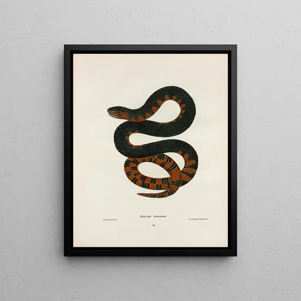 Reproducción artística de Helicops erythrogrammus por John Edwards Holbrook. Esta impresión de alta calidad captura los detalles vibrantes y la belleza única de esta especie de serpiente acuática. Perfecta para decorar su hogar u oficina con un toque de naturaleza exótica.